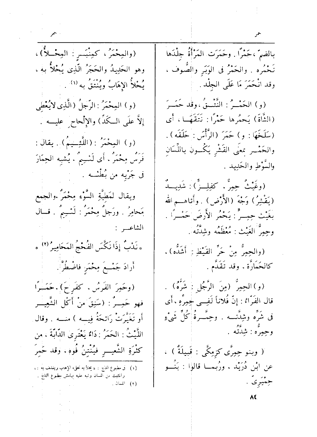 وَيُقَال لمَطِيَّةِ السَّوْءِ مِحْمَرٌ، وَالْجمع مَحامِرُ. ورَجلٌ مِحُمَرٌ: لَئِيمٌ. قَالَ الشَّاعِر: