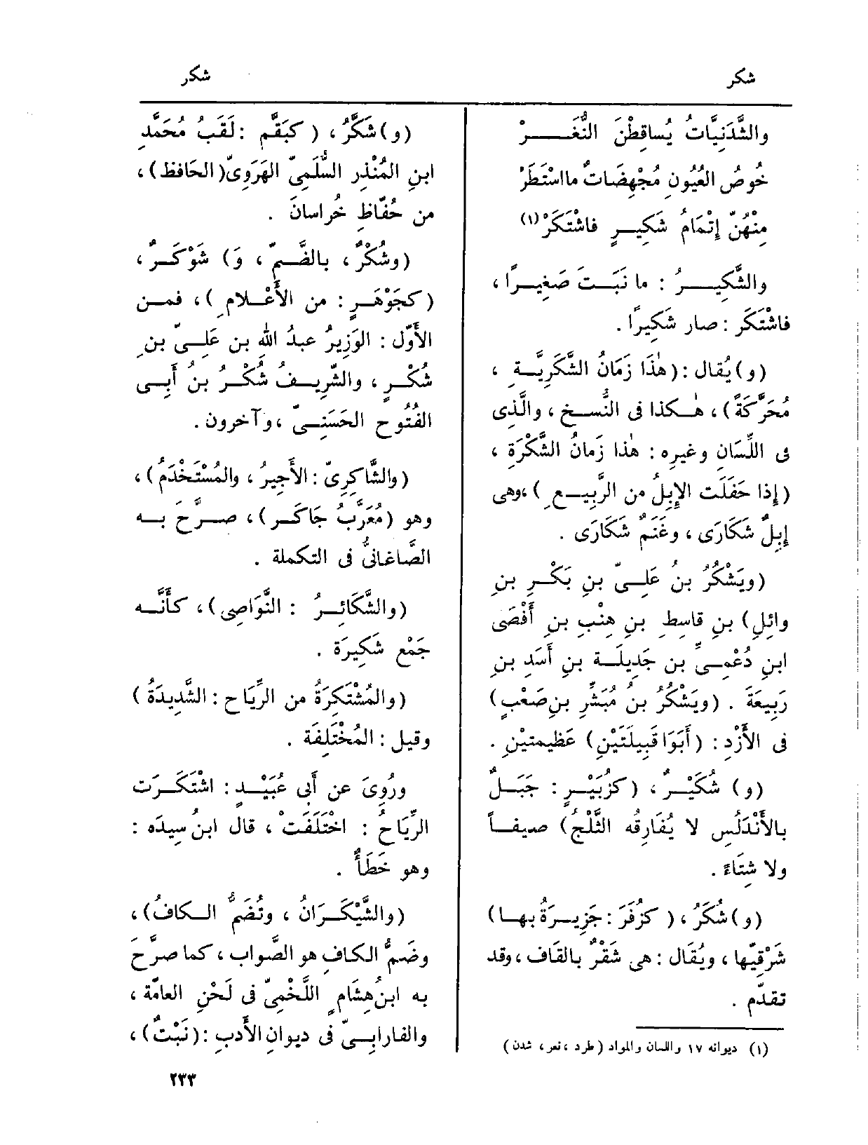 (وشُكْرٌ، بالضَّمّ، وَ) شَوْكَرٌ، (كجَوْهَرٍ: من الأَعْلامِ) ، فَمن الأَوّل: الوَزِيرُ عبدُ اللَّهِ بن عَلِيّ بنِ شُكْرٍ، والشّرِيفُ شُكْرُ بنُ أَبِي الفُتُوح الحَسَنِيّ، وَآخَرُونَ.