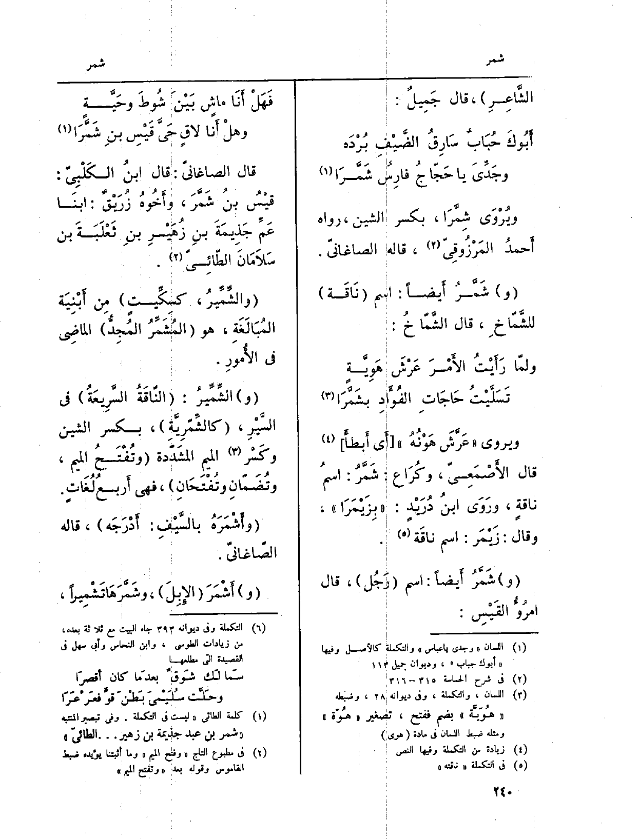(و) شَمَّرُ أَيضاً: اسْم (رَجُل) ، قَالَ امرُؤُ القَيْسِ: