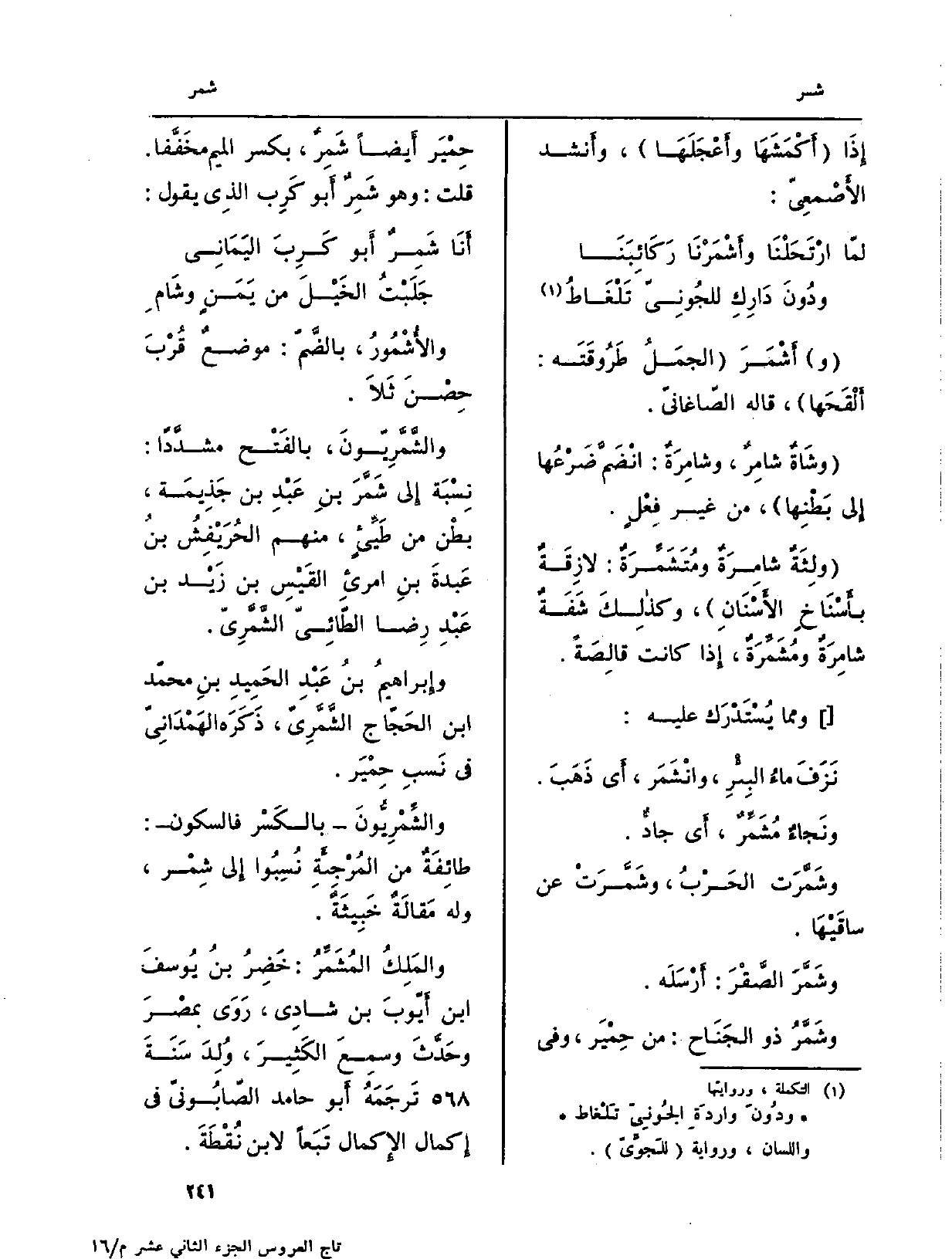 (ولِثَةٌ شامِرَةٌ ومُتَشَمِّرَةٌ: لازِقَةٌ بأَسْنَاخِ الأَسْنَانِ) ، وكذالِكَ شَفَةٌ شامِرَةٌ ومُشَمِّرَةٌ، إِذا كَانَت قالِصَةً.