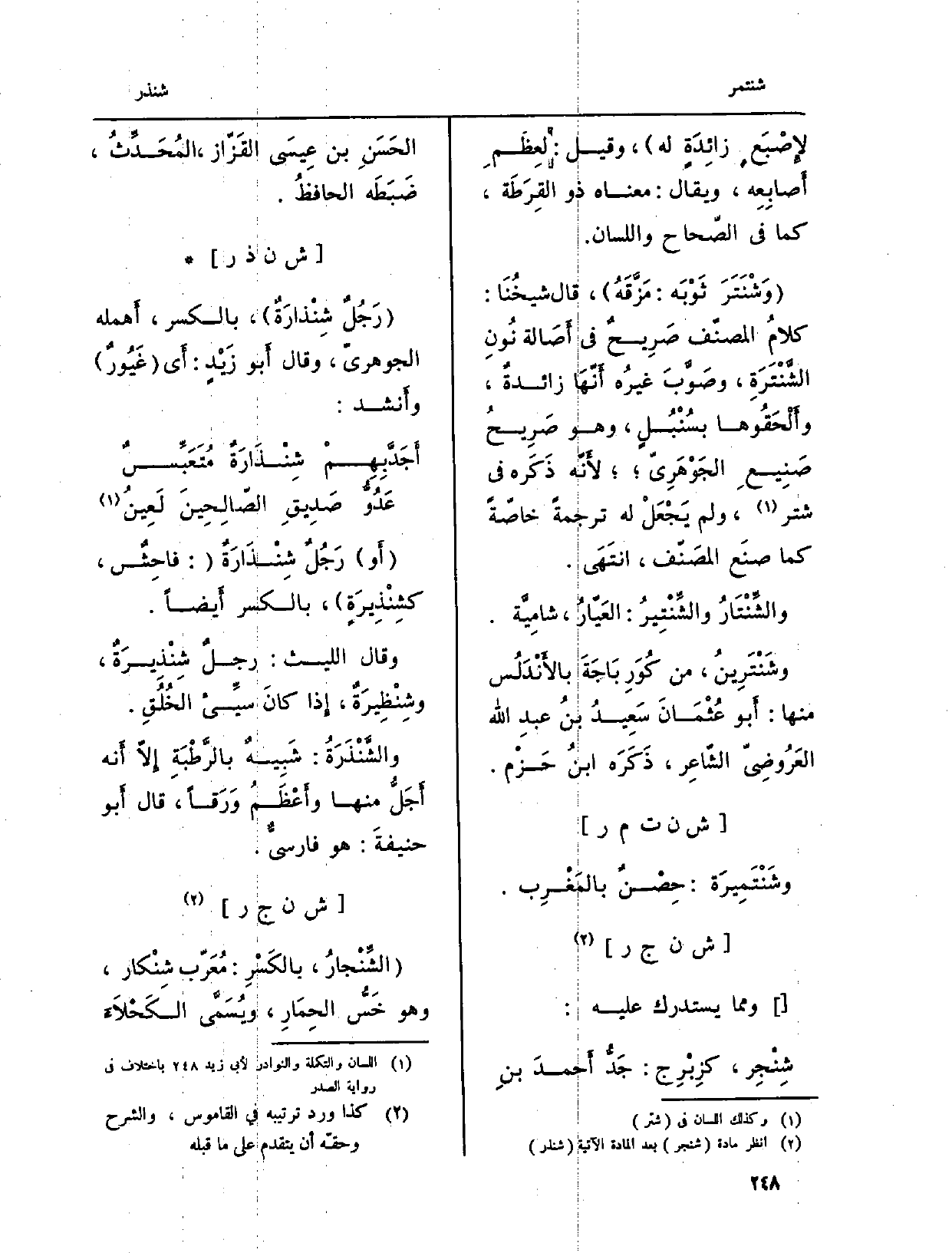 (أَو) رَجُلٌ شِنْذَارَةٌ: (فاحِشٌ، كشِنْيرَةٍ) ، بِالْكَسْرِ أَيضاً.