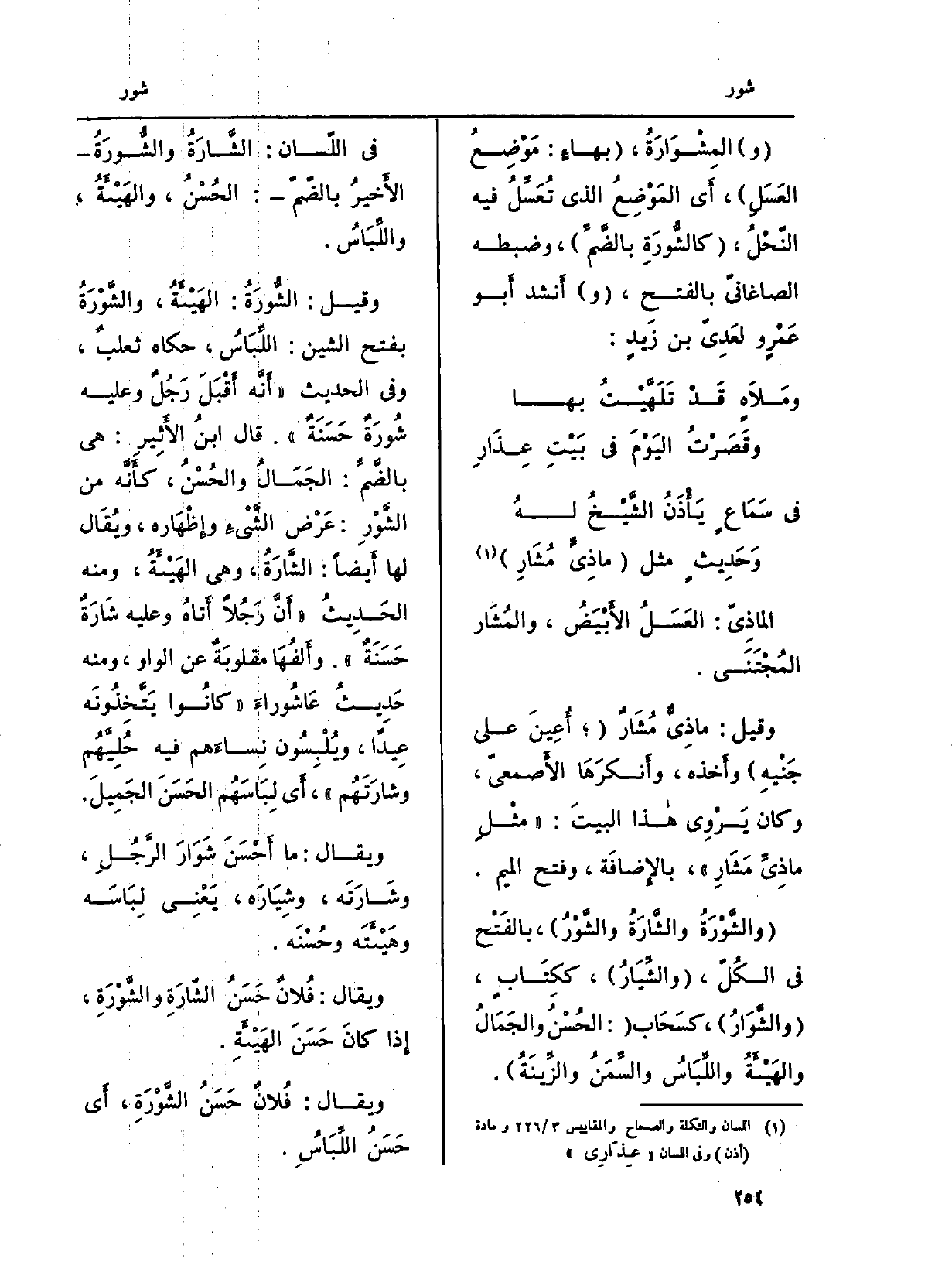 فِي اللّسان:} الشَّارَةُ {والشُّورَةُ الأَخيرُ بالضّمّ: الحُسْنُ، والهَيْئَةُ، واللِّبَاسُ.