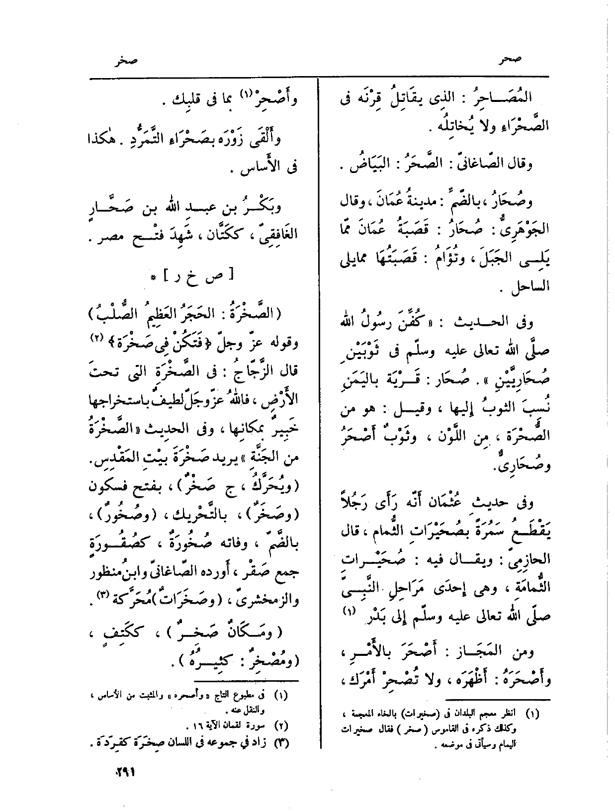 وصُحَارُ، بالضّمِّ: مدينةُ عُمَانَ، وَقَالَ الجَوْهَرِيُّ: صُحَارُ: قَصَبَةُ عُمَانَ ممّا يَلِي الجَبَلَ، وتُؤَامُ: قَصَبَتُهَا مِمَّا يَلِي السَّاحِل.
