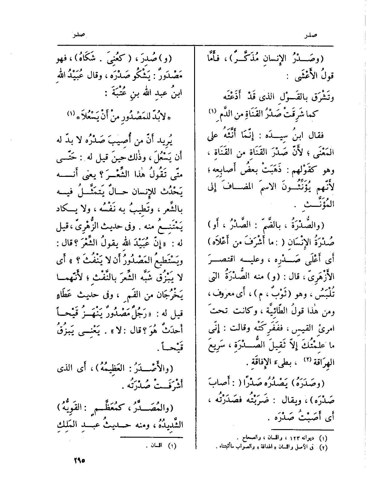 (وصَدْرُ الإِنسانِ مُذَكَّرٌ) ، فأَمَّا قولُ الأَعْشَى: