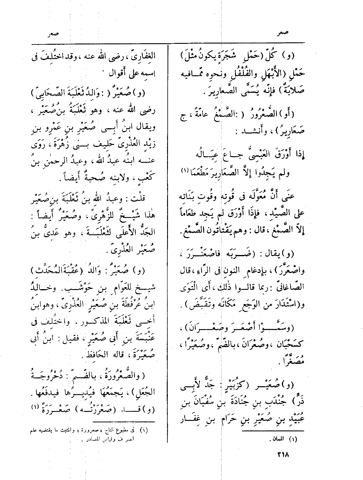 قلْت: وعبدُ اللَّهِ بنُ ثَعْلَبَةَ بنِ صُعَيْر هاذا شَيْخٌ للزُّهْرِيّ، وصُعَيْرٌ أَيضاً: الجَدُّ الأَعلَى لثَعْلَبَةَ، وَهُوَ عَدِيُّ بنُ صُعَيْر العُذْرِيّ.