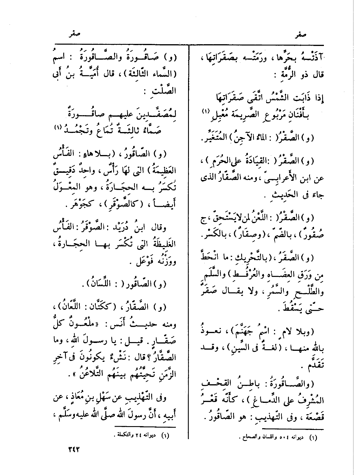 (و) صَاقُورَةُ والصَّاقُورَةُ: اسمُ (السَّماءِ الثّالِثَة) ، قَالَ أُمَيَّةُ بنُ أَبي الصَّلْتِ: