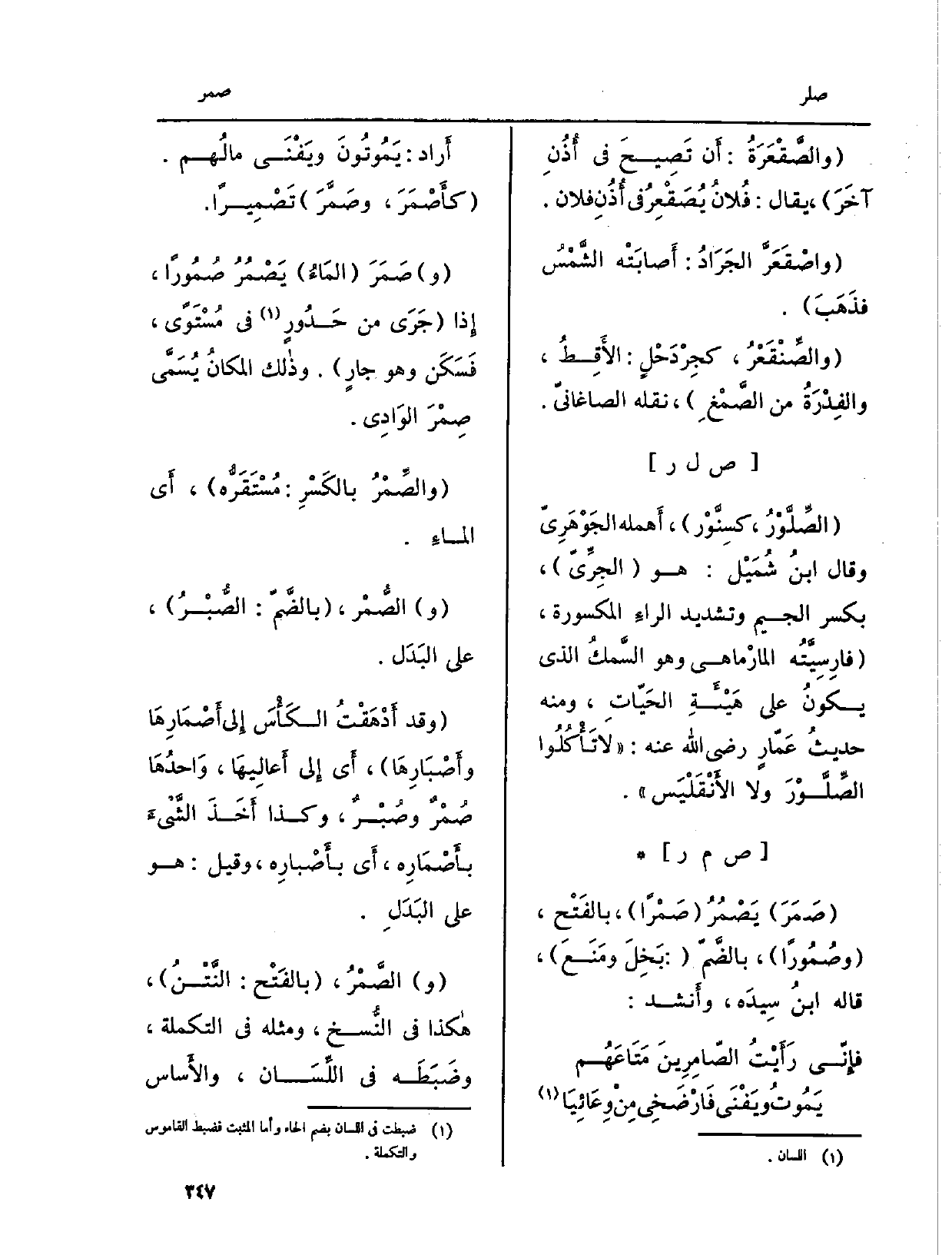(و) الصُّمْر، (بالضَّمّ: الصُّبْرُ) ، على البَدَل.
