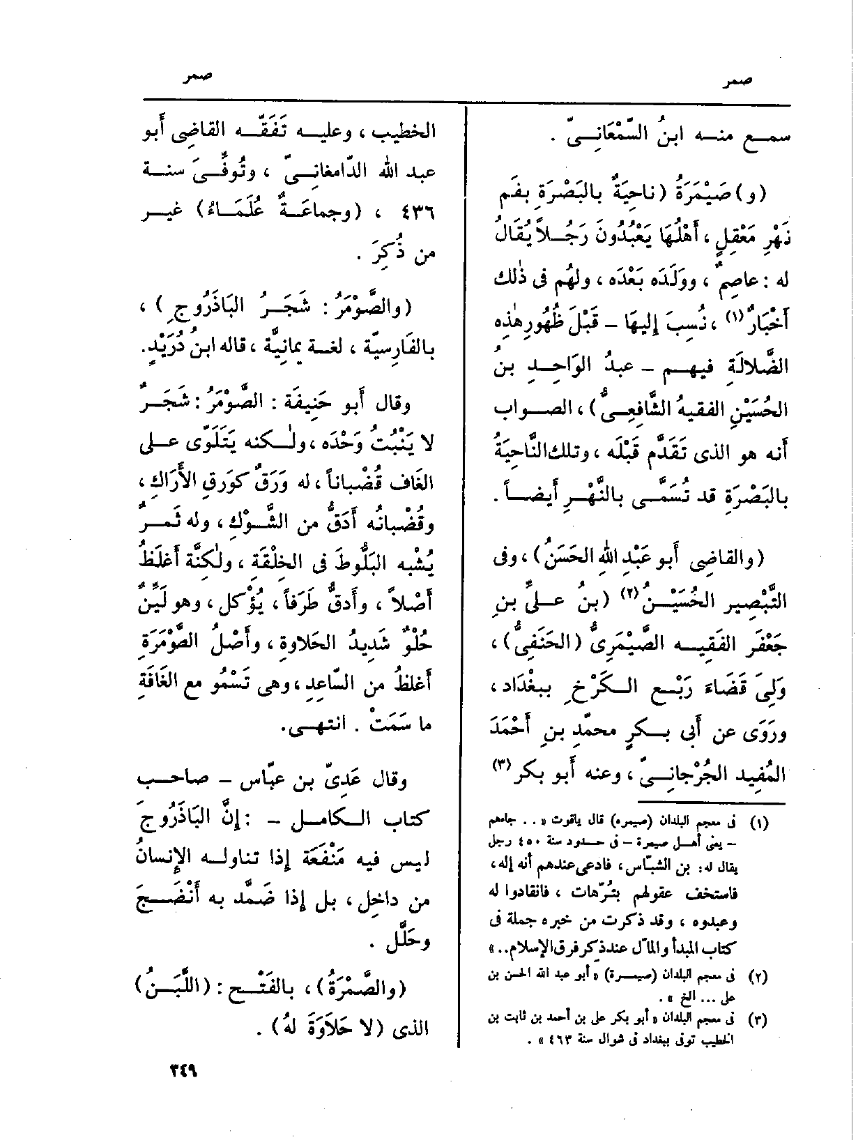 (والصَّوْمَرُ: شَجَرُ البَاذَرُوجِ) ، بالفَارِسيّة، لُغَة يمانِيَّة، قَالَه ابنُ دُرَيْدٍ.