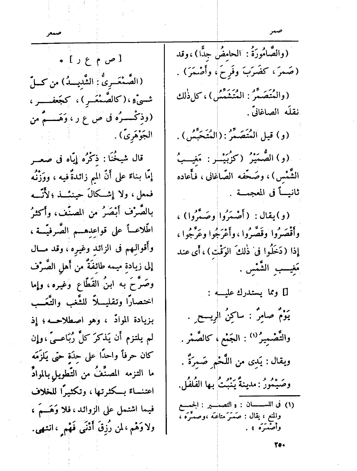 (والمُتَصَمِّرُ: المُتَشمِّسُ) ، كل ذالك نقلَه الصاغانيّ.