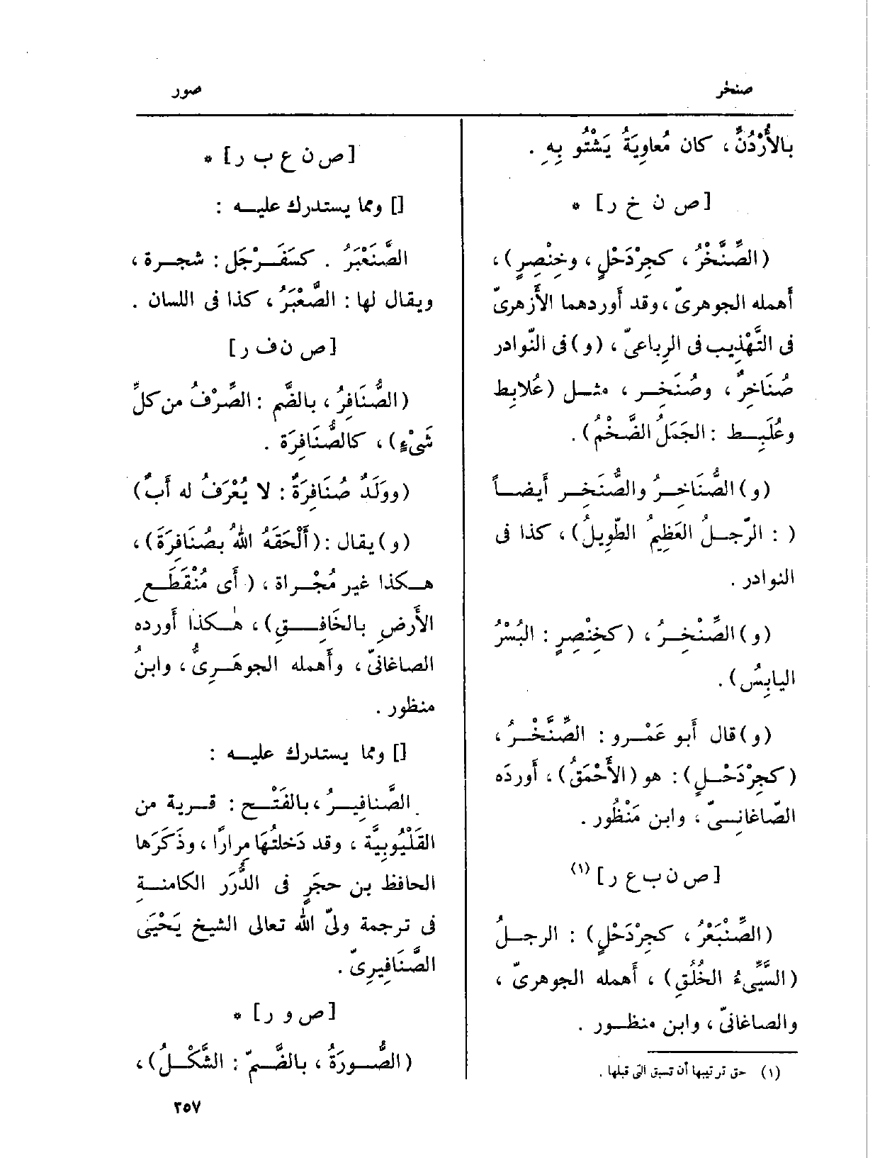 : (الصُّنَافِرُ، بالضَّم: الصِّرْفُ من كلِّ شَيْءٍ) ، كالصُّنَافِرَة.