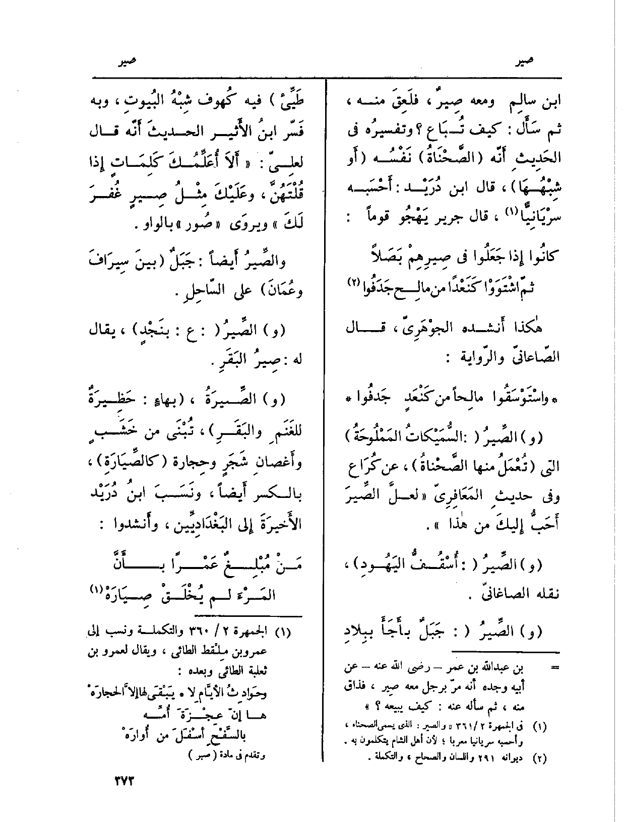 بن سالِم وَمَعَهُ صِيرٌ، فلَعِقَ مِنْهُ، ثمَّ سَأَل: كَيفَ تُبَاع؟ وتفسيرُه فِي الحَدِيثِ: أَنّه (الصَّحْنَاةُ) نَفْسُه (أَو شِبْهُهَا) ، قَالَ ابْن دُرَيْد: أَحْسَبه سرْيَانِيّاً، قَالَ جرير يَهْجُو قوما: