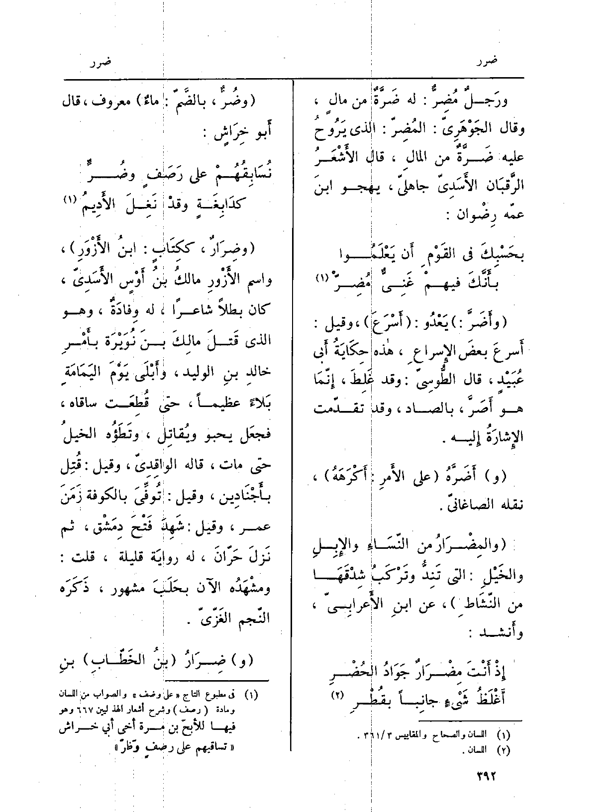 (و) } ضِرَارُ (بنُ الخَطّابِ) بنِ