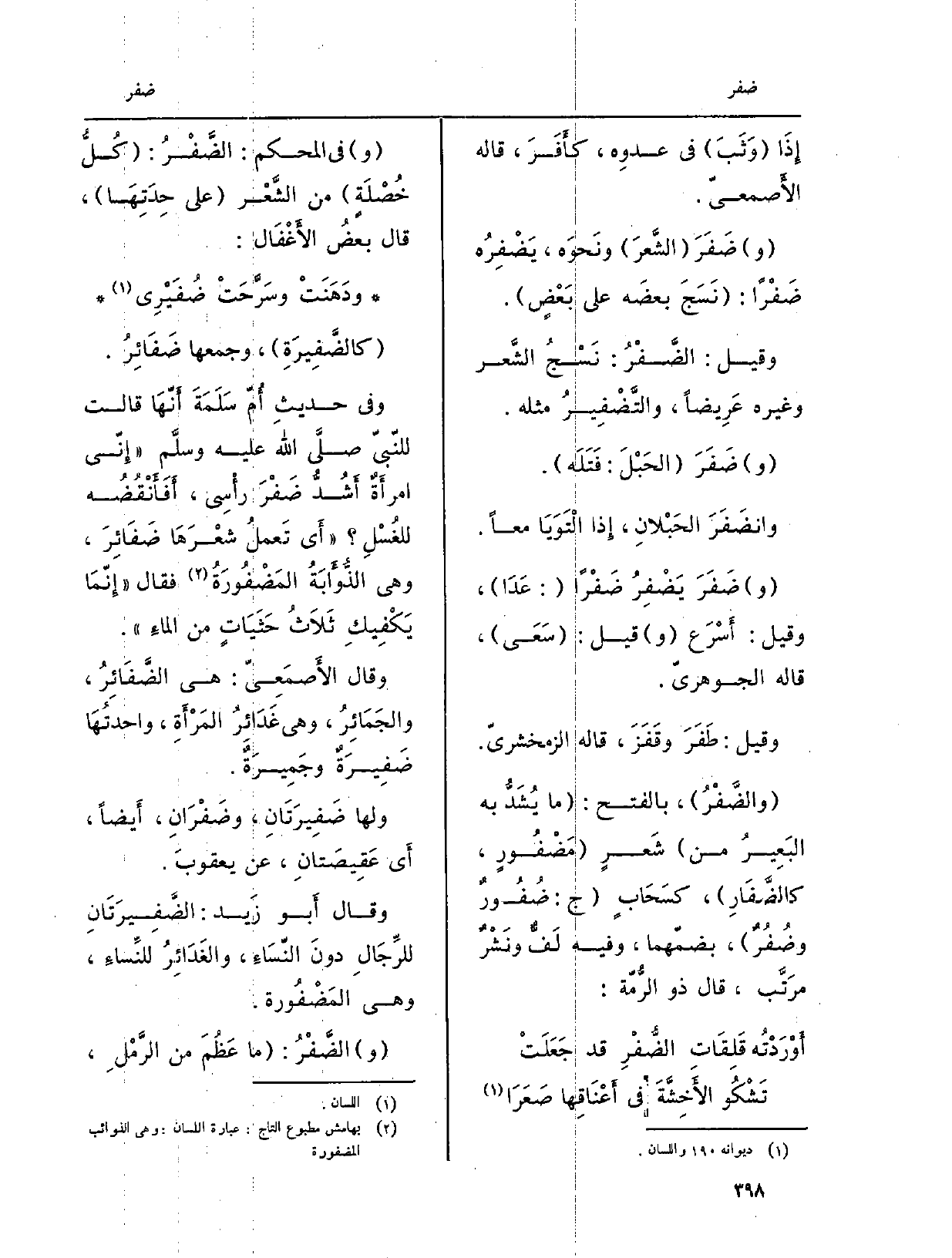 (و) فِي الْمُحكم: الضَّفْرُ: (كُلُّ خُصْلَةٍ) من الشَّعْر (على حِدَتِهَا) ، قَالَ بعضُ الأَغْفَال: