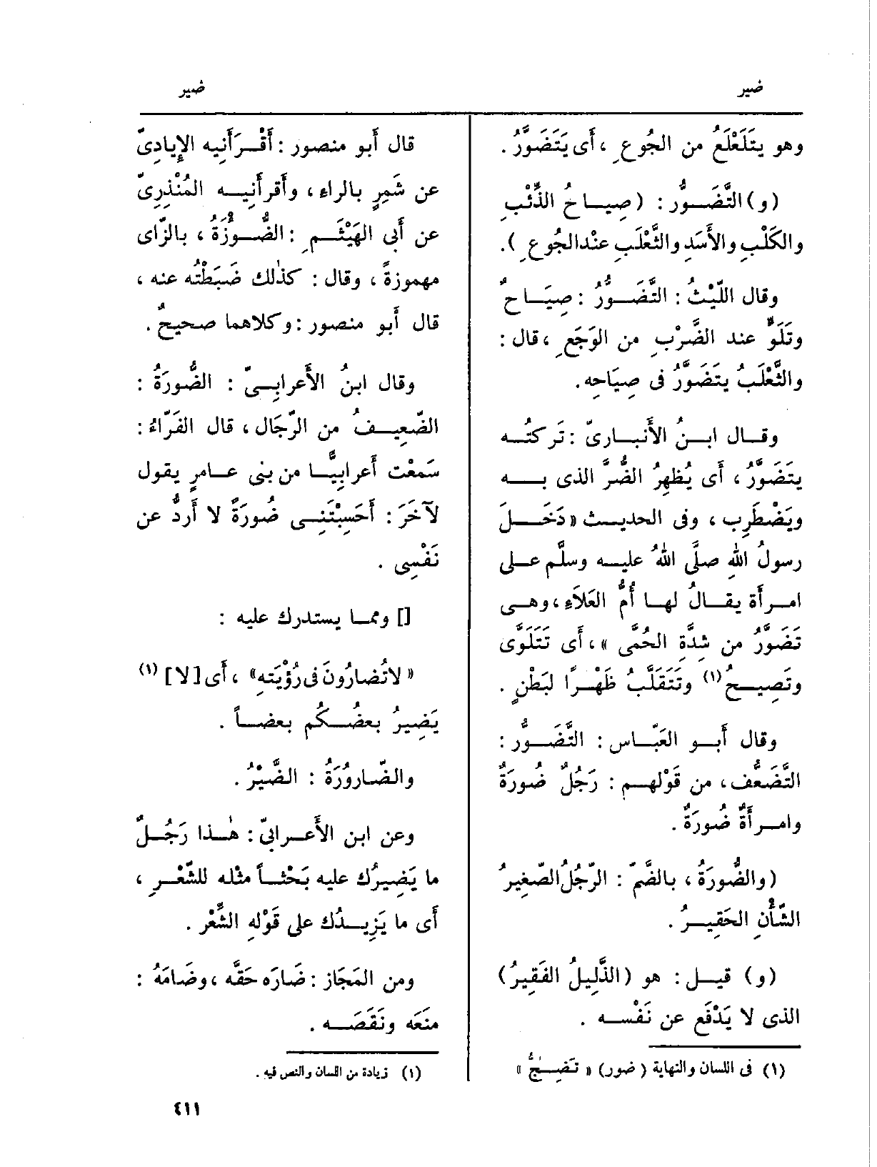 وَقَالَ أَبو العَبّاس: {التَّضَوُّر: التَّضَعُّف، من قَوْلهم: رَجُلٌ} ضُورَةٌ وامرأَةٌ {ضُورَةٌ.