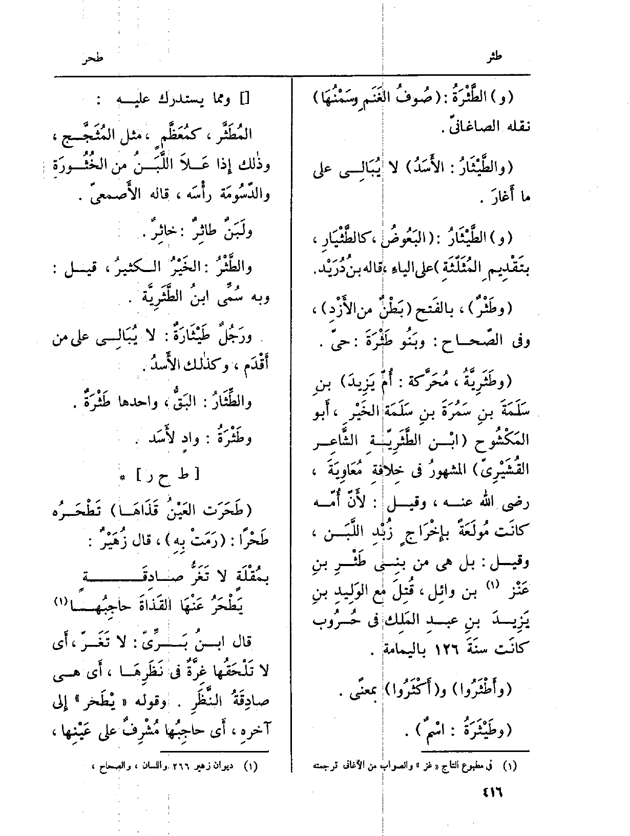 : (طَحَرَت العَيْنُ قَذَاهَا) تَطْحَرُه طَحْراً: (رَمَتْ بِهِ) ، قَالَ زُهَيْرٌ: