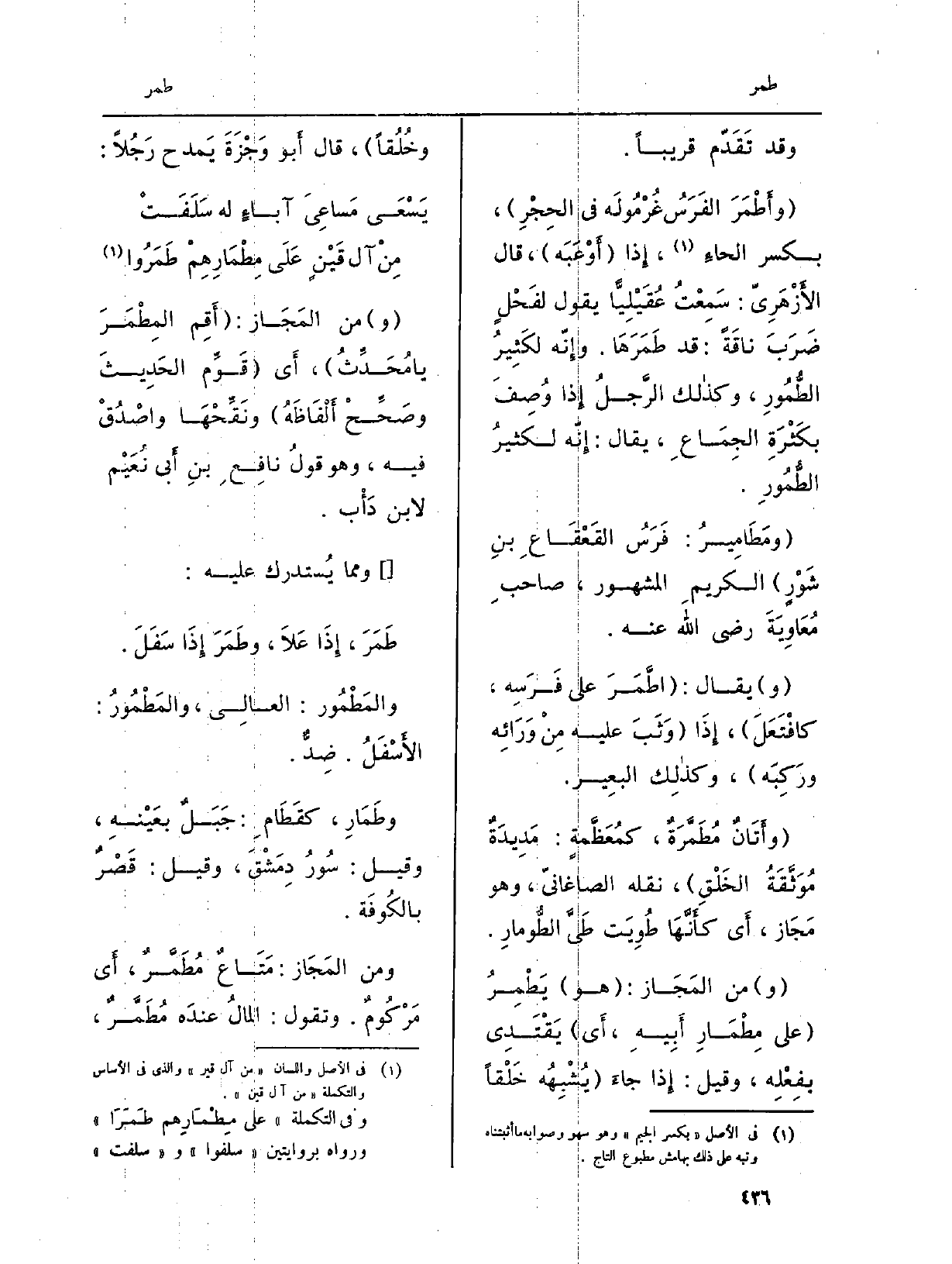 طَمَرَ، إِذَا عَلاَ، وطَمَرَ إِذا سَفَلَ.