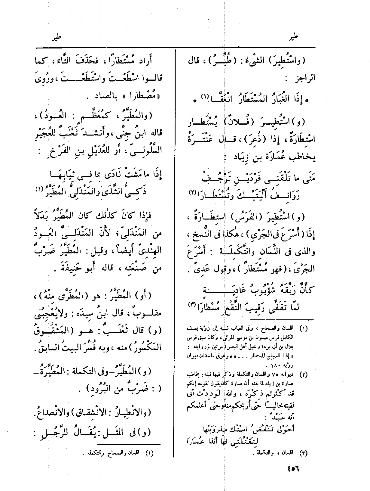 ( {واسْتُطِيرَ) الشيْءُ: (} طُيَّرُ) ، قَالَ الراجز: