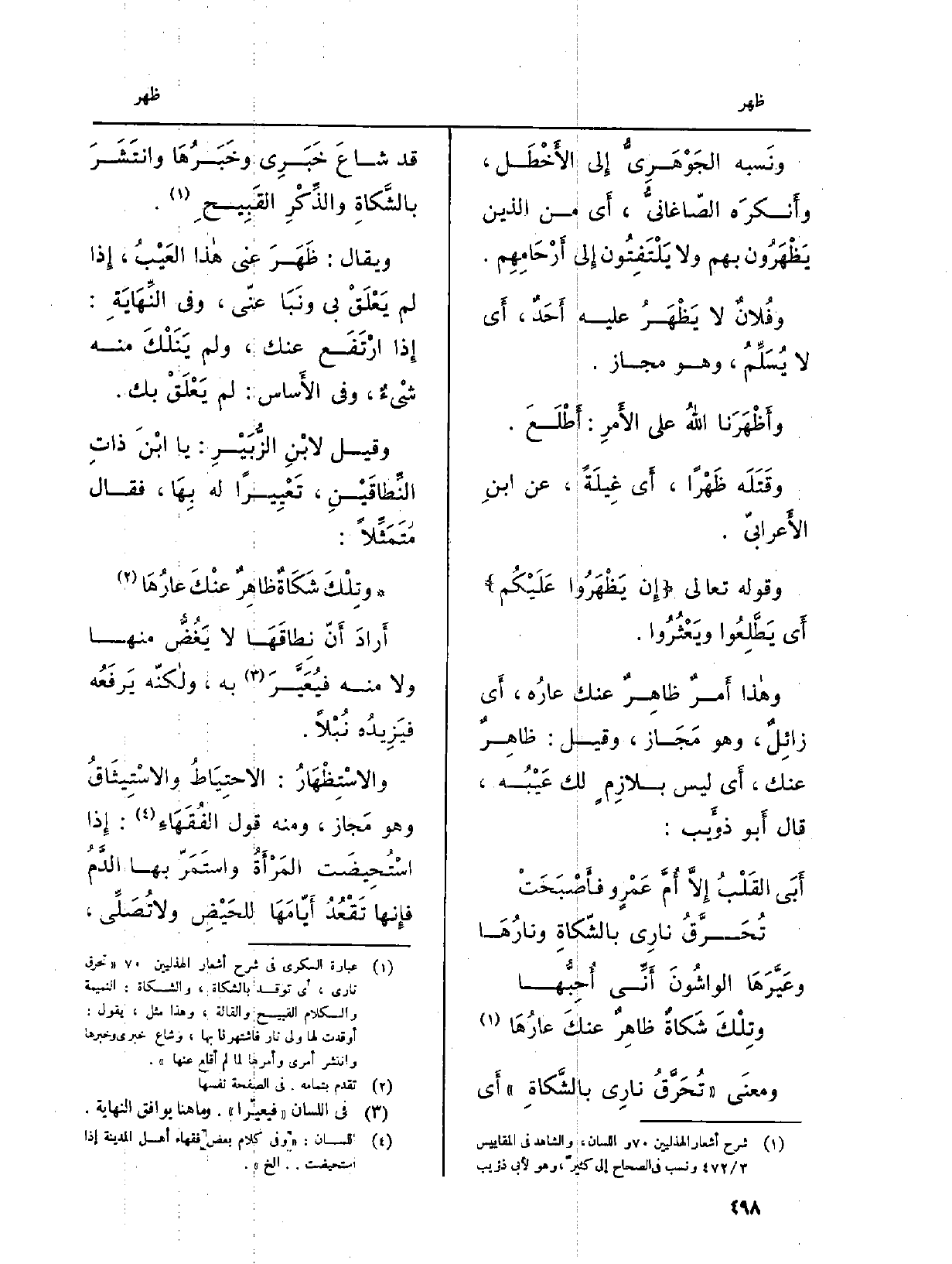 وهاذا أَمرٌ ظاهِرٌ عَنْك عارُه، أَي زائِلٌ، وَهُوَ مَجَاز، وَقيل: ظاهِرٌ عَنْك، أَي لَيْسَ بلازِمٍ لَك عَيْبُه، قَالَ أَبو ذؤَيب: