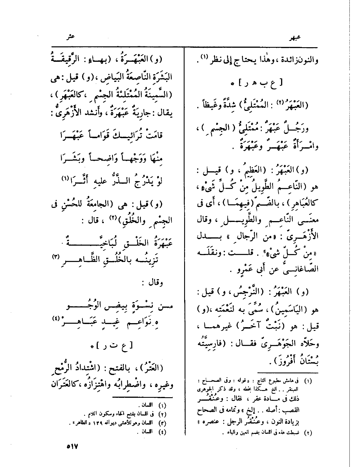 ورَجُلٌ عَبْهَرٌ: (مُمْتَلِىءُ (الجِسْمِ) ، وامْرَأَةٌ عَبْهَرٌ وعَبْهَرَةٌ.