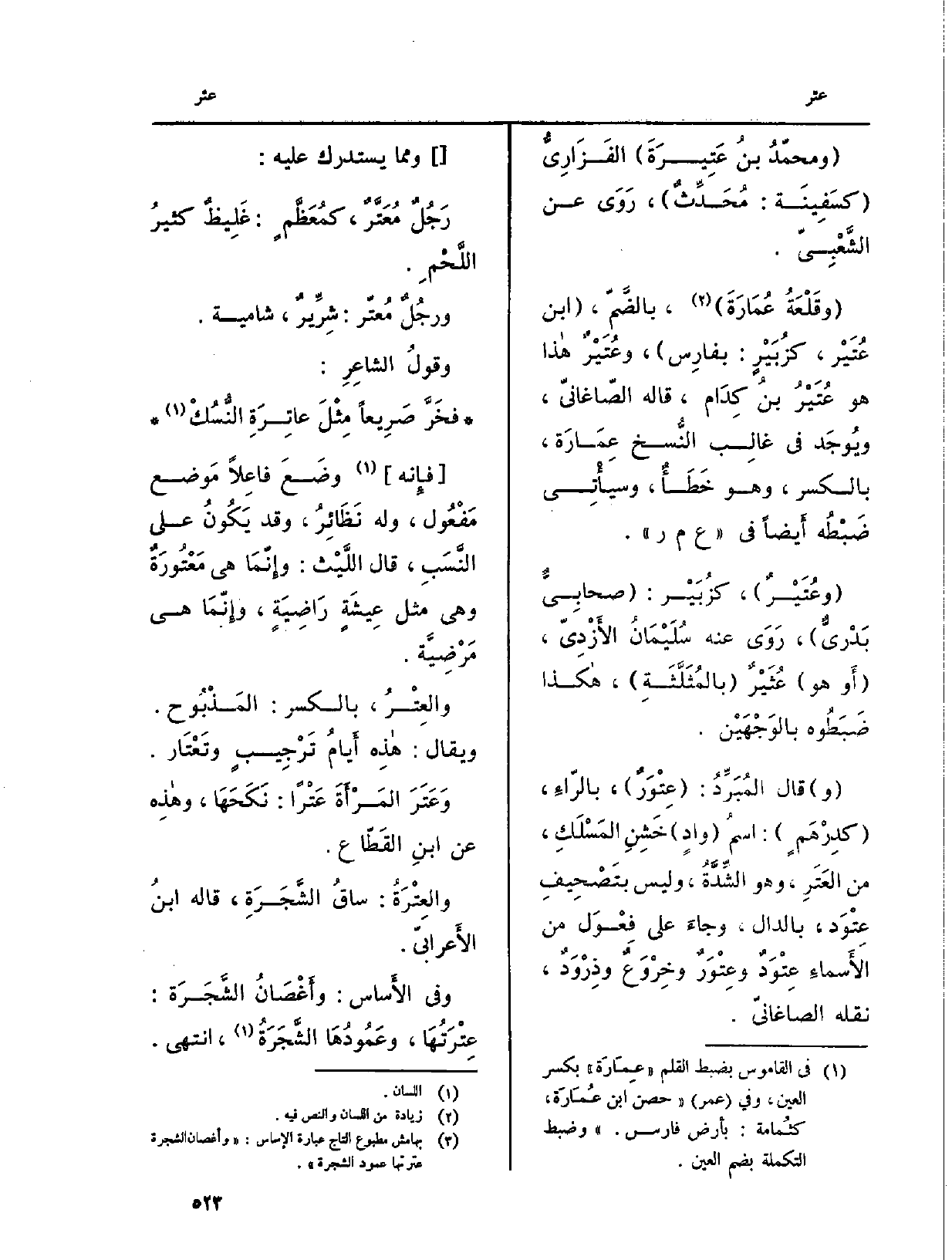 (و) قَالَ المُبَرِّدُ: (عِتْوَرٌ) ، بالرّاءِ، (كدِرْهَمٍ) : اسمُ (وادٍ) خَشِنِ المَسْلَكِ، من العَتَرِ، وَهُوَ الشِّدَّةُ، وَلَيْسَ بتَصْحيفِ عِتْوَد، بِالدَّال، وجاءَ على فِعْوَل من الأَسماءِ عِتْوَدٌ وعِتْوَرٌ وخِرْوَعٌ وذِرْوَدٌ، نَقله الصاغانيّ.