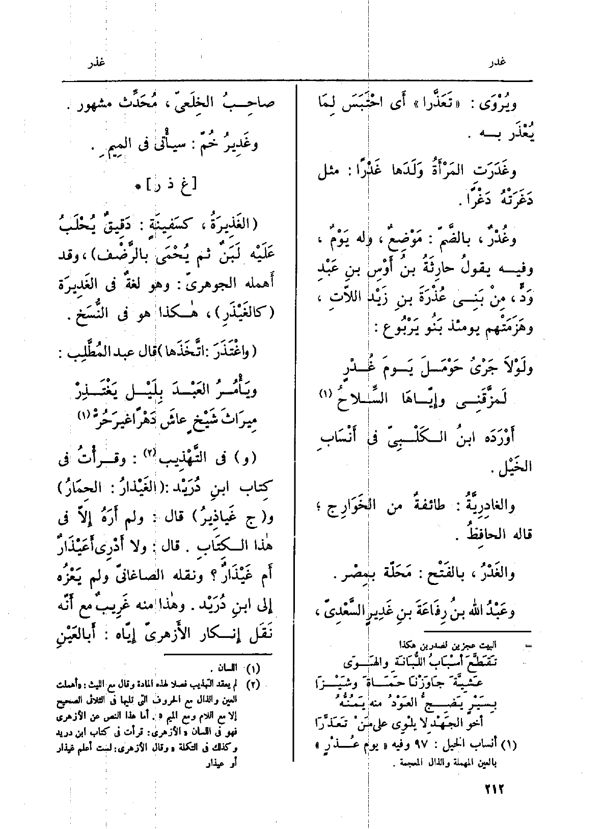 أَوْرَدَه ابنُ الكَلْبِيّ فِي أَنْسَابِ الخَيْل. والغادِرِيَّةُ: طائفةٌ من الخَوَارِج قَالَه الحافِظُ. والغَدْرُ، بالفَتْح: مَحَلّة بمِصْر. وعَبْدُ الله بنُ رِفَاعَةَ بنِ غَدِيرٍ السَّعْدِيّ، صاحِبُ الخِلَعيّ، مُحَدِّث مَشْهُور.
