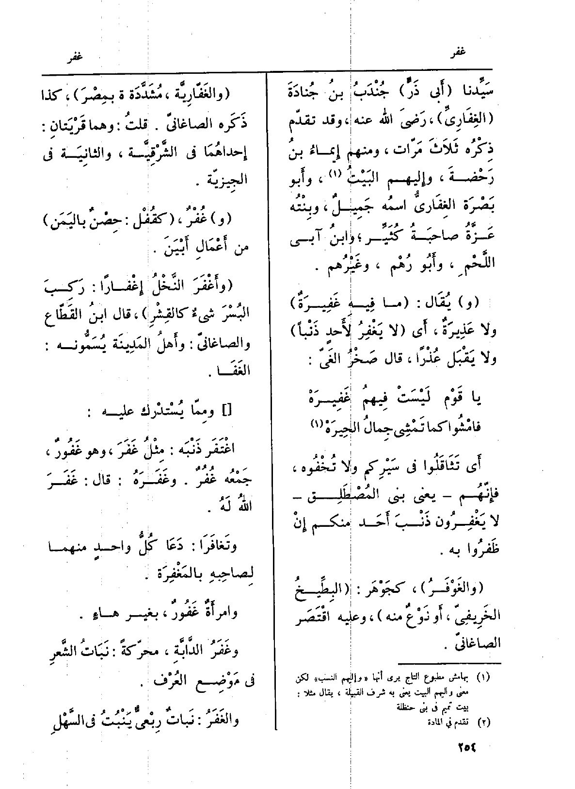 البُسْرَ شئٌ كالقِشْرِ، قَالَ ابنُ القَطّاع والصاغانيّ: وأَهلُ المَدِينَة يُسَمُّونه: الغَفَا. ومِمّا يُسْتَدْرك عَلَيْهِ: اغْتَفَر ذَنْبَه: مِثْلُ غَفَرَ، وَهُوَ غَفُورٌ، وجَمْعُه غُفُرٌ. وغَفَرَهُ: قَالَ غَفَرَ اللهُ لضهُ. وتَغافَرَا: دَعَا كُلُّ واحدٍ مِنْهُمَا لِصاحِبهِ بالمَغْفِرَة. وامرأَةٌ غَفُورٌ، بِغَيْر هاءٍ. وغَفَرُ الدَّابَّةِ، محرّكةً: نَبَاتُ الشَّعرِ فِي مَوْضِع العُرْف. والغَفَرُ: نَباتٌ رِبْعيٌّ يَنْبُتُ فِي السَّهْل
