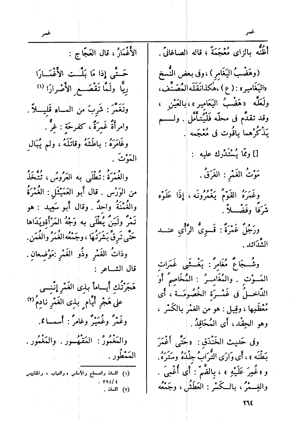 أَظُنُّه بالزاي مُعْجَمَةً قَالَه الصاغانيّ. وهَضْبُ اليَغَامِرِ، وَفِي بعض النُّسخ اليَغَامير: ع، هَكَذَا نَقَلَه المُصَنِّف، ولَعَلَّه هَضْبُ اليَعَامِير، بالعَيْنِ، وَقد تقدَّم فِي محلّه فَلْيُتأَمَّل. وَلم يَذْكُرْهما ياقُوت فِي مُعْجَمه. وممّا يُسْتَدْرك عَلَيْهِ: مَوْتُ الغَمْرِ: الغَرَقُ. وغَمَرَهُ القَوْمُ يَغْمُرُونَه، إِذَا عَلَوْه شَرَفاً وفَضْلاً. ورَجُلٌ غَمْرَةٌ: قَوِيُّ الرَّأْيِ عِنْد الشَّدَائد. وشُجَاعٌ مُغَامرٌ: يَغْشَى غَمَراتِ المَوْتِ.