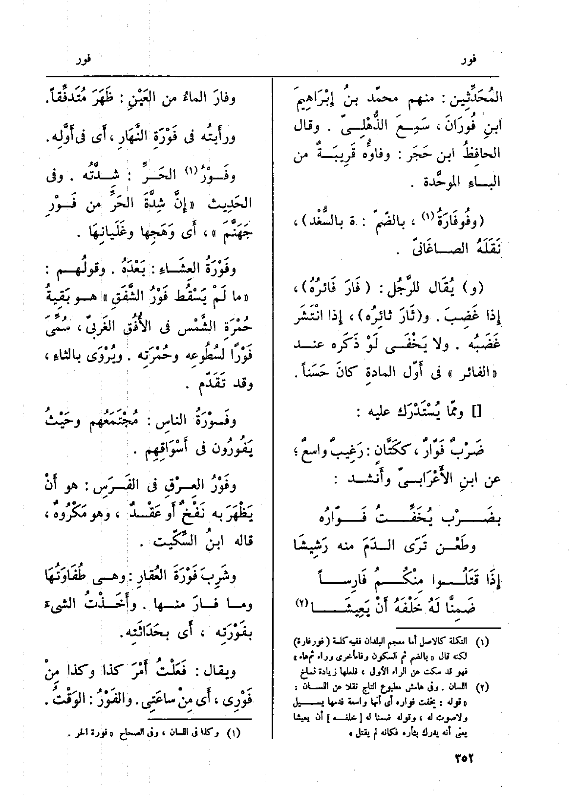 المُحَدِّثين: مِنْهُم محمّد بنُ إِبْرَاهِيمَ ابنِ فُورَانَ، سَمِعَ الذُّهْلِيّ. وَقَالَ الحافِظُ ابْن حَجَر: وفاؤُه قَرِيبَةٌ من الباءِ الموحَّدة. {وفُوفَارَةُ، بالضّمّ: ة بالسُّغْد، نَقَلَهُ الصاغَانيّ. ويُقَال للرَّجُل: فَارَ فَائرُهُ، إِذا غَضِبَ.