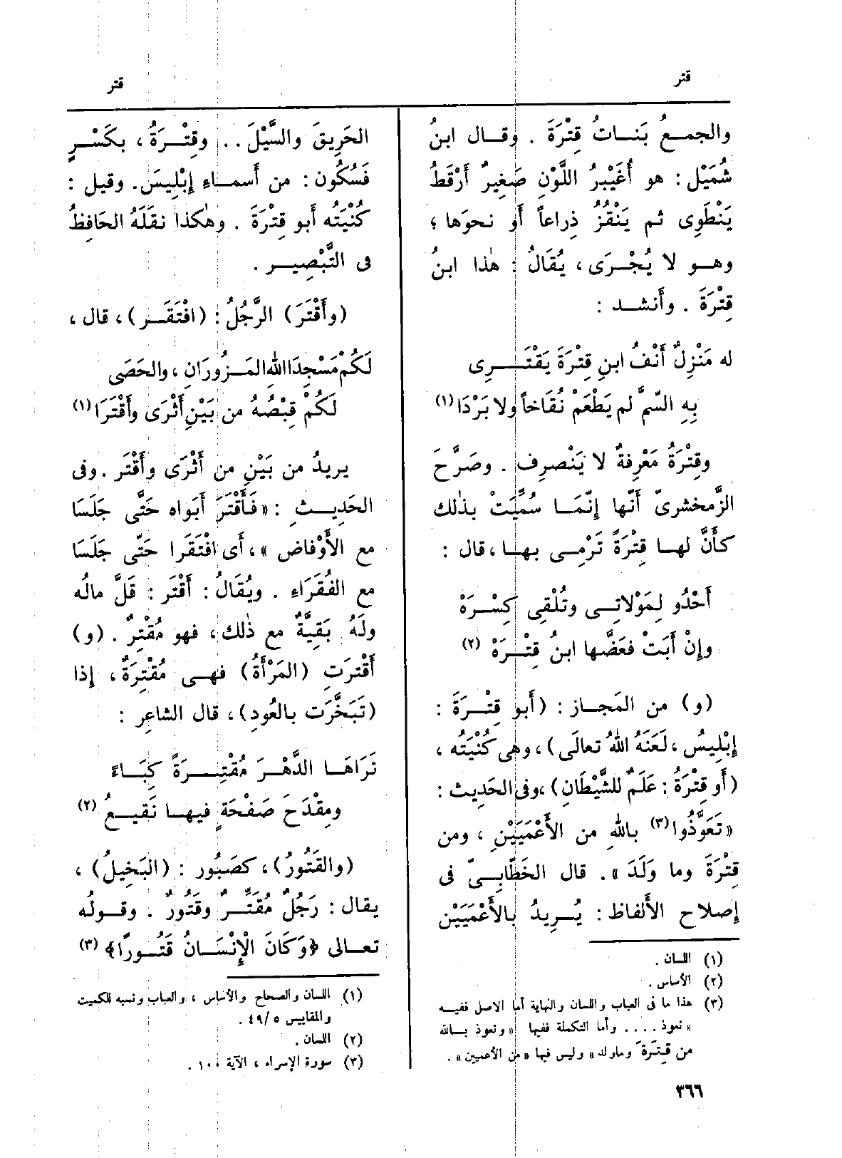 يريدُ من بَيْنِ من أَثرَى وأَقْتَر. وَفِي الحَدِيثِ: فَأقْتَرَ أَبَواه حَتَّى جَلضسَا مَعَ الأَوْفاض، أَي افْتَقَرا حَتَّى جَلَسَا مَعَ الفقَرَاءِ. ويُقَالُ: أَقْتَر: قَلَّ مالُه ولَه بَقِيَّةٌ مَعَ ذَلِك، فَهُوَ مُقْتِرٌ. وأَقْتَرتِ المَرْأةُ فَهِيَ مُقْتِرَةٌ، إِذا تَبَخَّرَت بالعُودِ، قَالَ الشاعِر: