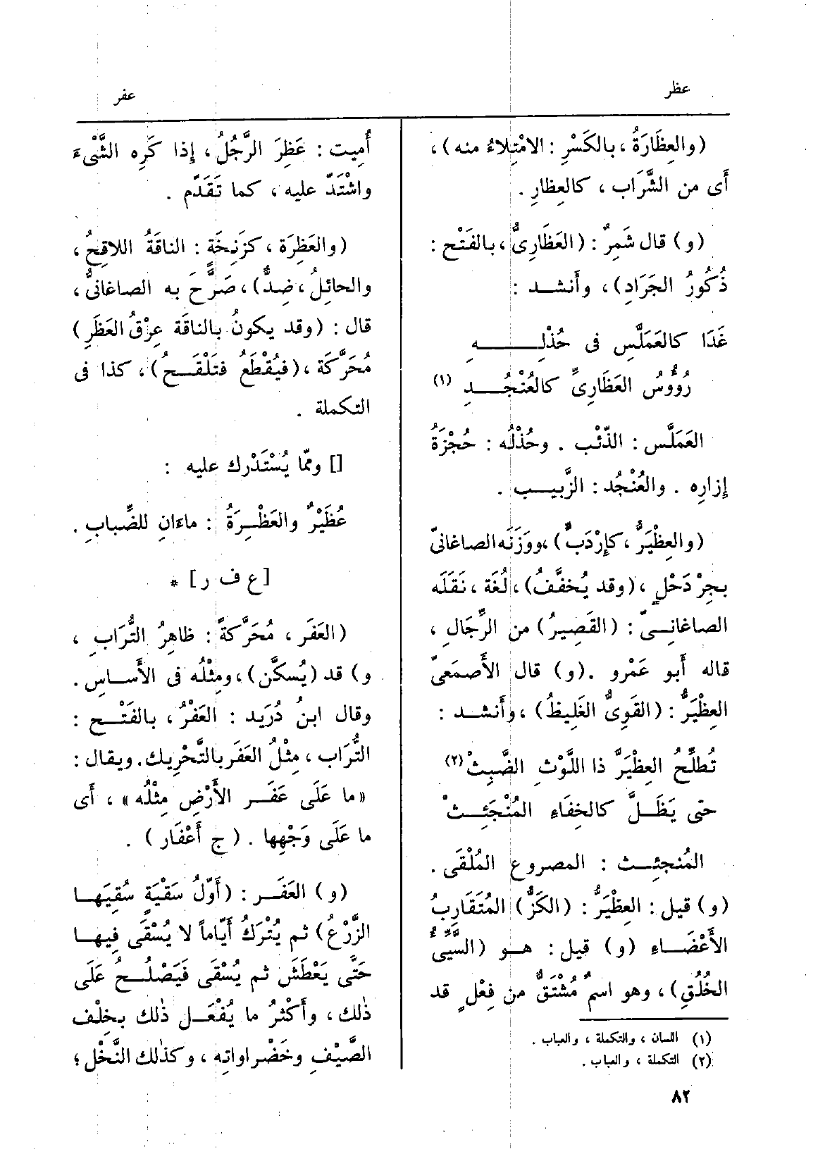 العَمَلَّس: الذّئْب. وحُذْلُه: حُجْرَةُ إِزارِه. والعُنْجُد: الزَّبيب. والعِظْيَرُّ، كإِرْدَبٍّ، ووَزَنَه الصاغانيّ بجِرْدَحْلٍ، وَقد يُخفَّفُ، لُغَة، نَقَلَه الصاغانِيّ: القَصِيرُ من الرِّجَالِ، قَالَه أَبو عَمْرو. وَقَالَ الأَصْمَعيّ العِظْيَرُّ: القَوِيُّ الغَلِيظُ، وأَنشد: