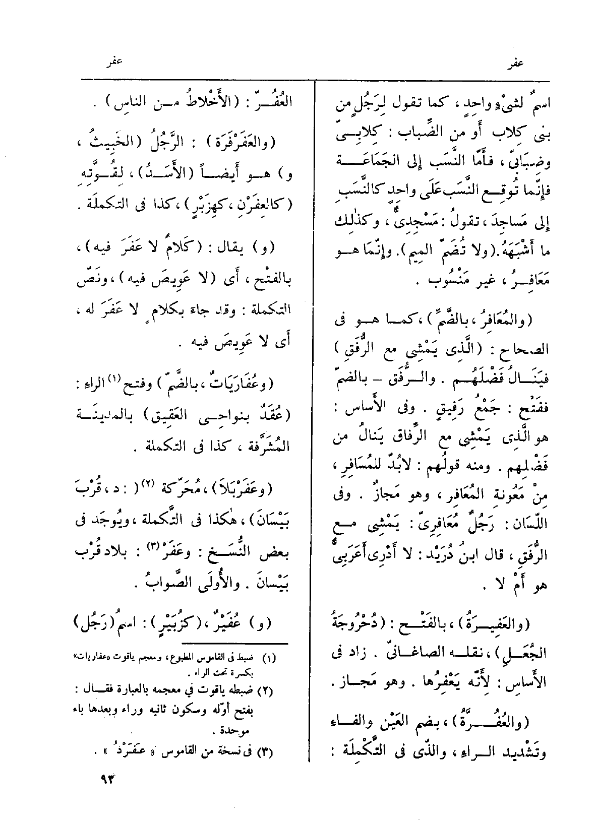 والعُفُرَّةُ، بِضَم العَيْنِ والفاءِ وتَشْديد الراءِ، والّذي فِي التَّكْمِلَة: العُفُرّ: الأَخْلاطُ من الناسِ.