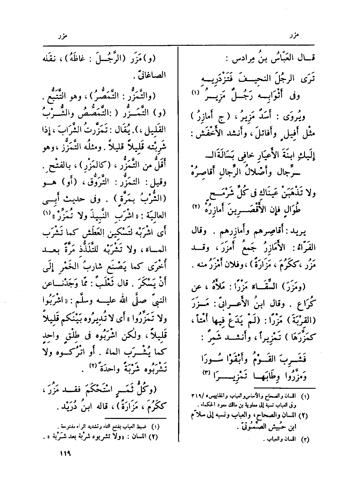 ويُروى: أسَدٌ مَزير، ج أمازِر مثل أَفِيل وأَفائِل، وَأنْشد الأخفَش: