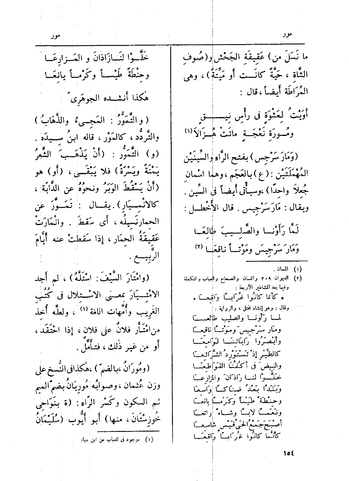} وَمَارَ سَرْجِس بِفَتْح الراءِ والسينَيْن المُهملَتَيْن: ع بالعَجَم، وهما اسمانِ جُعلا وَاحِدًا، وَسَيَأْتِي أَيْضا فِي السِّين. وَيُقَال {مَارَ سَرْجِيس. قَالَ الأخطل: