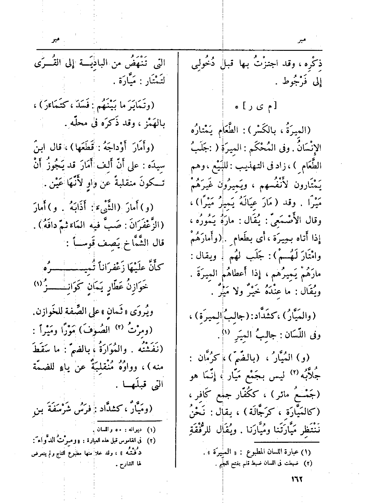 ويُروى ثَمانٍ على الصِّفة للخَوازن. {ومِرْتُ الصُّوفَ} مَوْرَاً ومَيْرَاً: نَفَشْتُه. {والمُوَارة، بالضمّ: مَا سَقَطَ مِنْهُ، وواوُه منقلِبَة عَن ياءٍ للضمّة الَّتِي قبلهَا.} ومَيَّارٌ، كشَدَّاد: فرَسُ شَرْسَفةَ بنِ