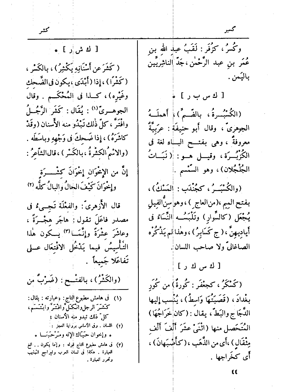 وكُسرُ، كزُفَر: لَقَبُ عبدِ اللهِ بنِ عمر بنِ عبد الرَّحْمَن، جدّ الناشريِّين بِالْيمن.
