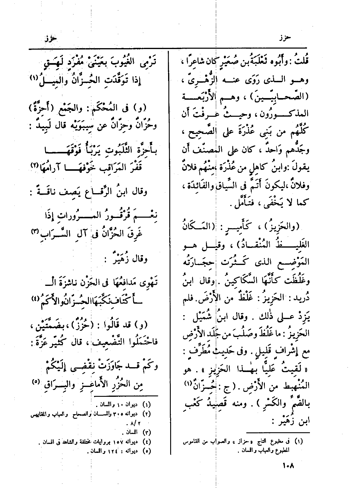 (وَكَمْ قد جاوَزَتْ نِقْصي إليْكُم ... مِن} الحُزُزِ الأماعِزِ والبِراقِ)