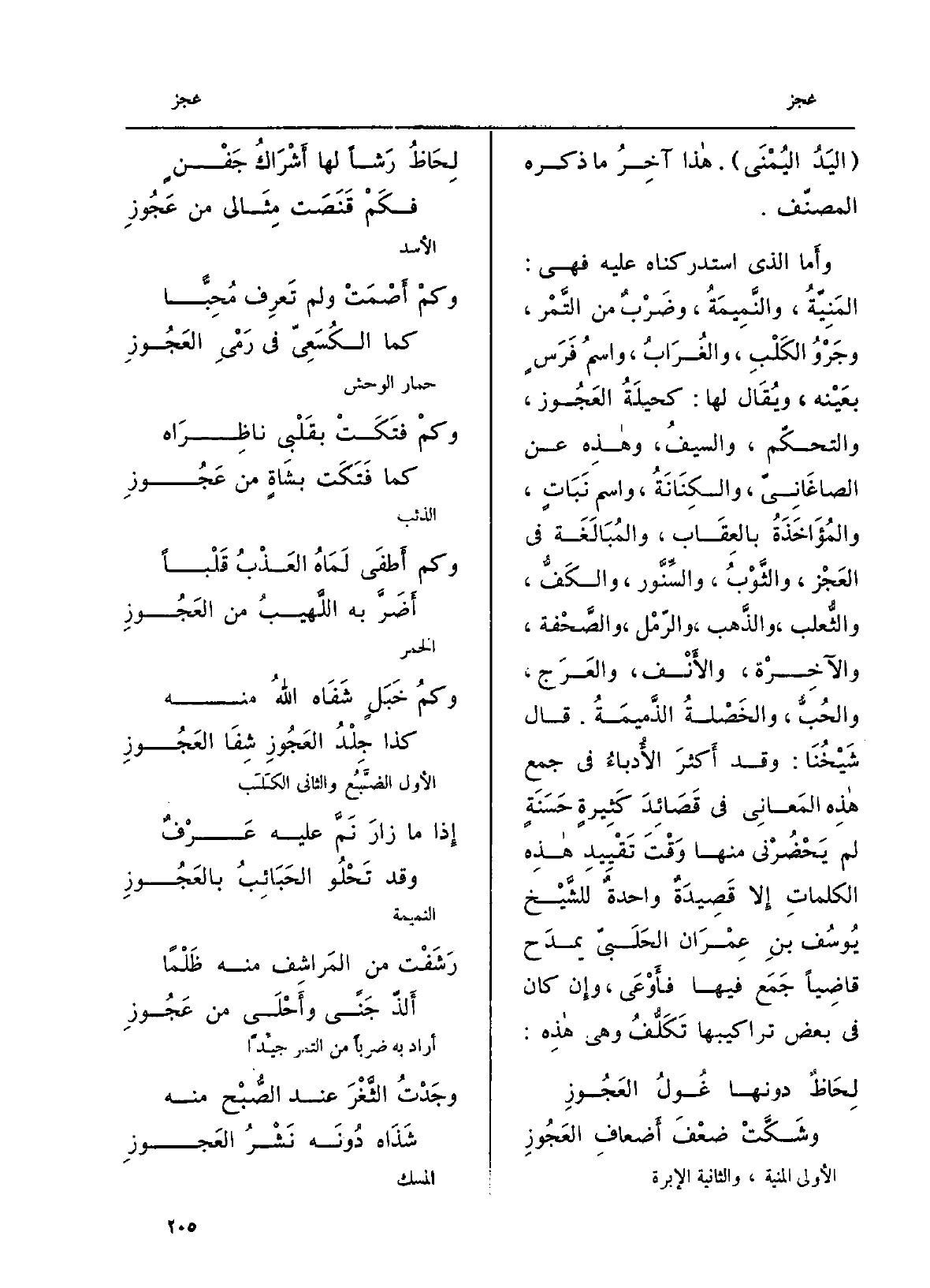 (إِذا مَا زارَ نَمَّ عَلَيْهِ عَرْفٌ ... وَقد تَحْلُو الحَبائِبُ بالعَجُوزِ)