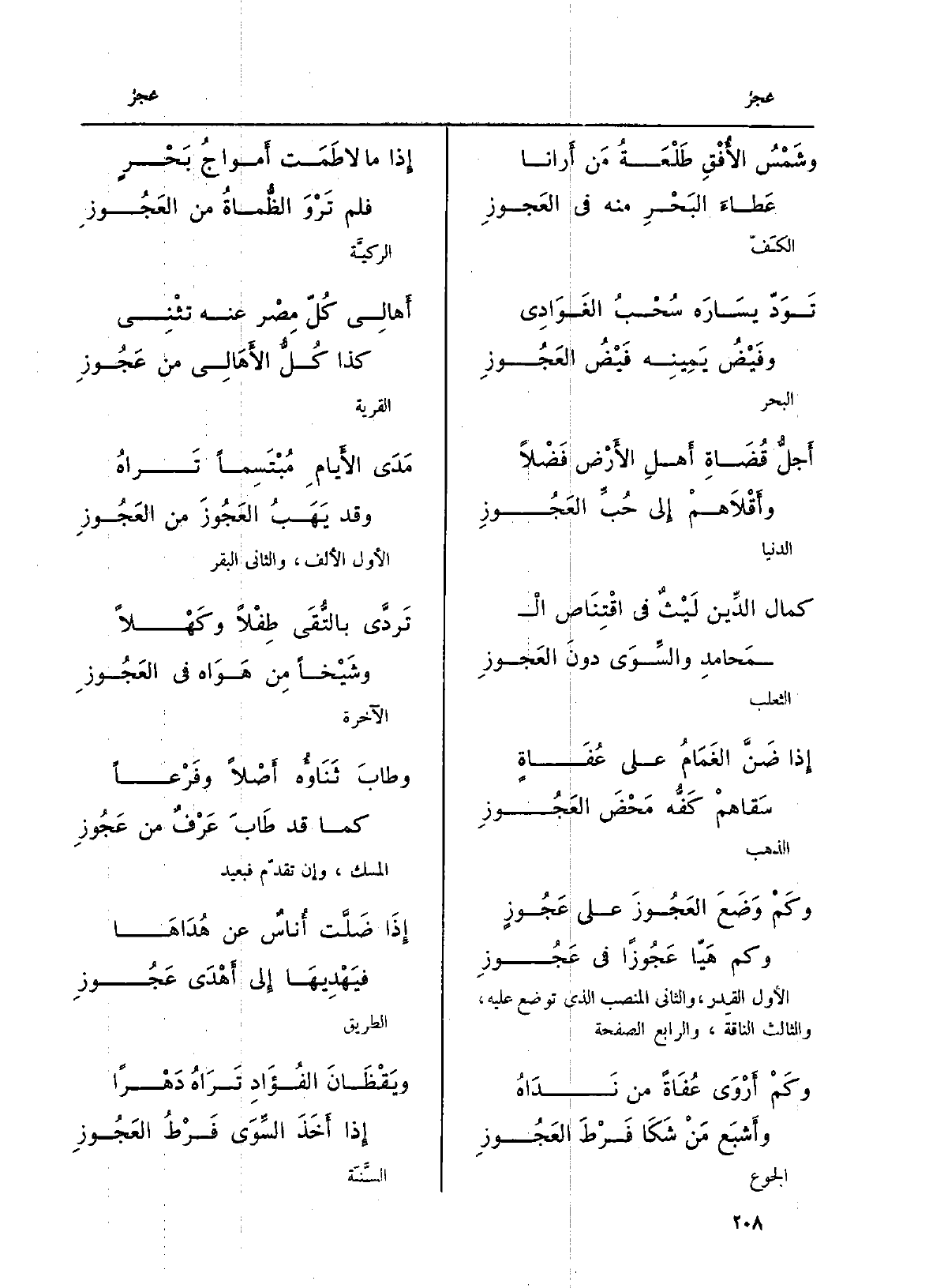 (وكَمْ وضَعَ العَجُوزَ على عَجُوزٍ ... وَكم هَيّا عَجُوزاً فِي عَجُوزِ)