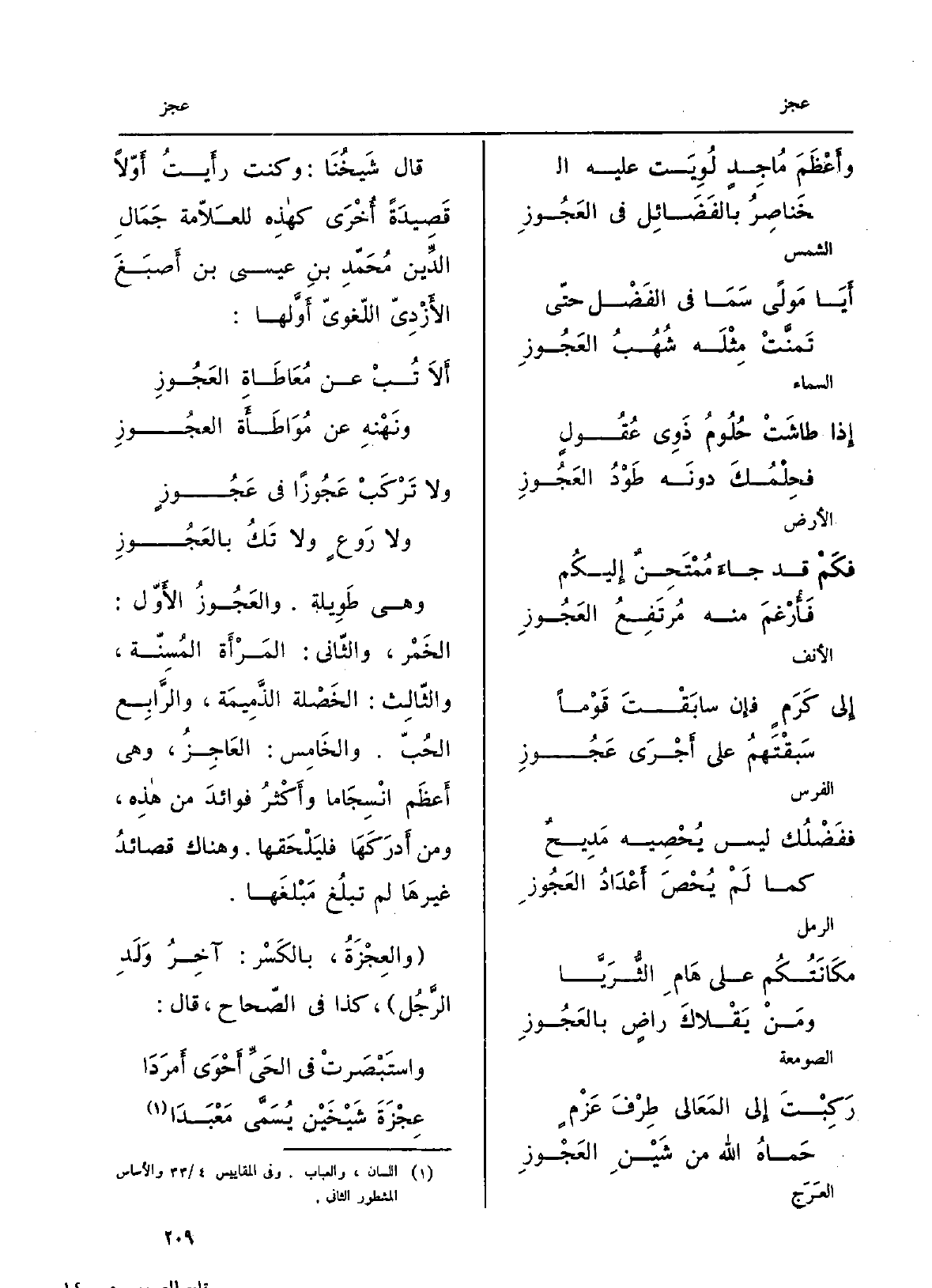 (وأَعظَمَ ماجِدٍ لُوِيَت عَلَيْهِ ال ... خَناصِرُ بالفضائل فِي العَجُوزِ)