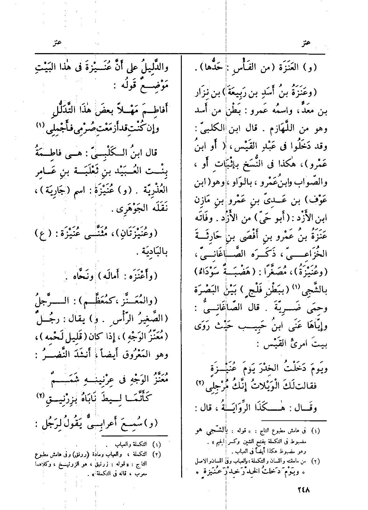 وَقَالَ: هَكَذَا الرِّوايَةُ، قَالَ: والدَليل على أَنَّ عُنَيْزَةَ فِي هَذَا الْبَيْت مَوضِعٌ قَوْله: