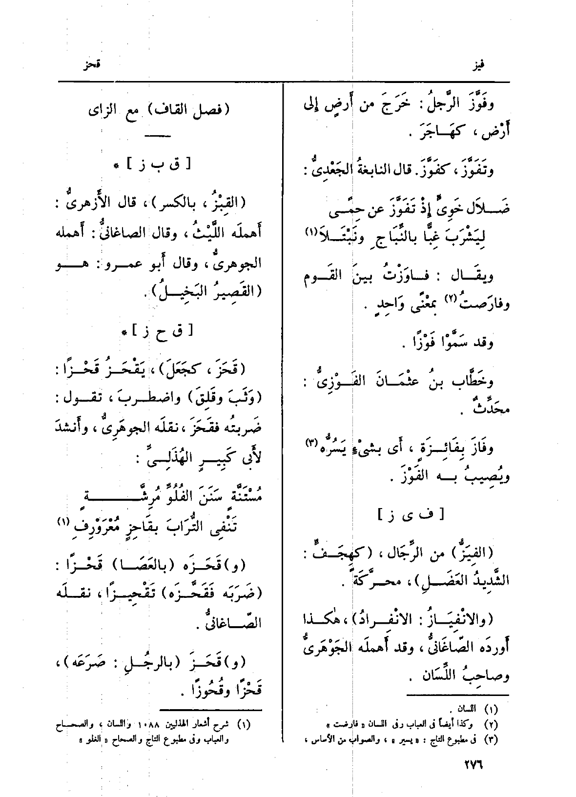 (فصل الْقَاف مَعَ الزَّاي)
