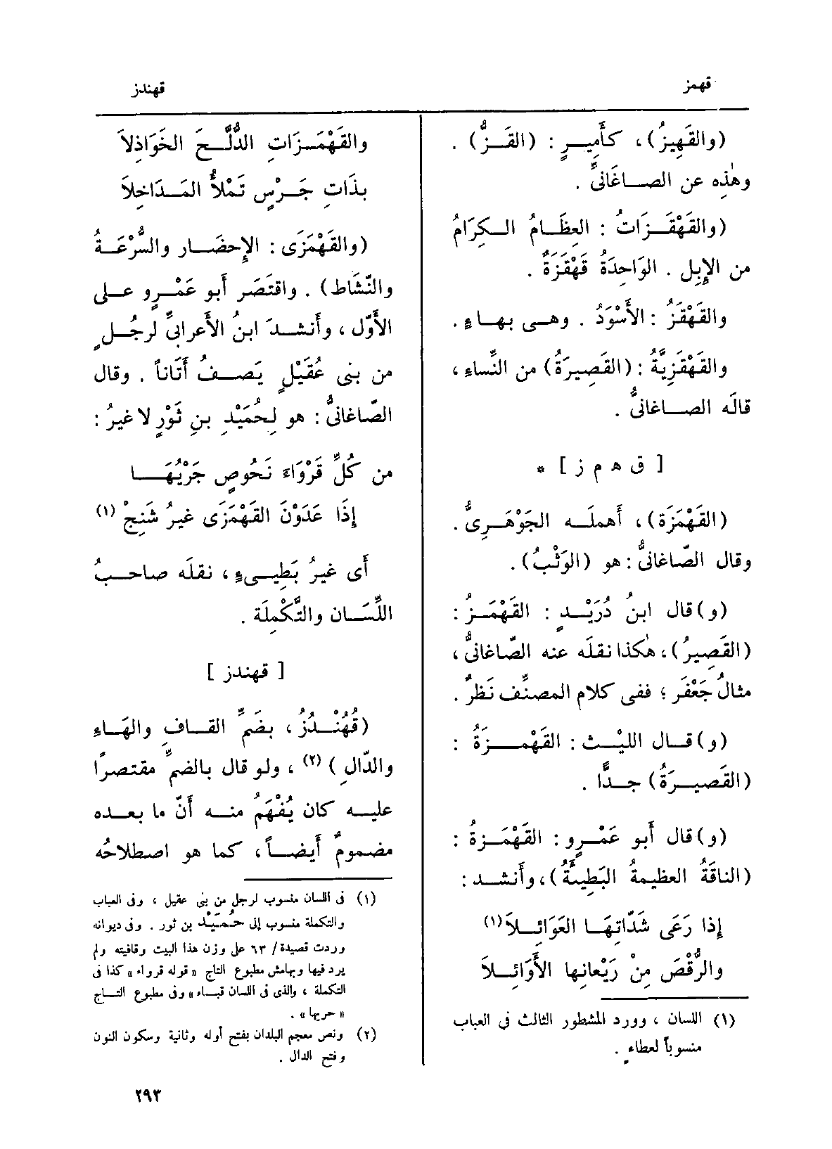 قَالَ أَبُو عَمْرو: القَهْمَزَة: الناقةُ العظيمةُ البَطيئة، وَأنْشد: