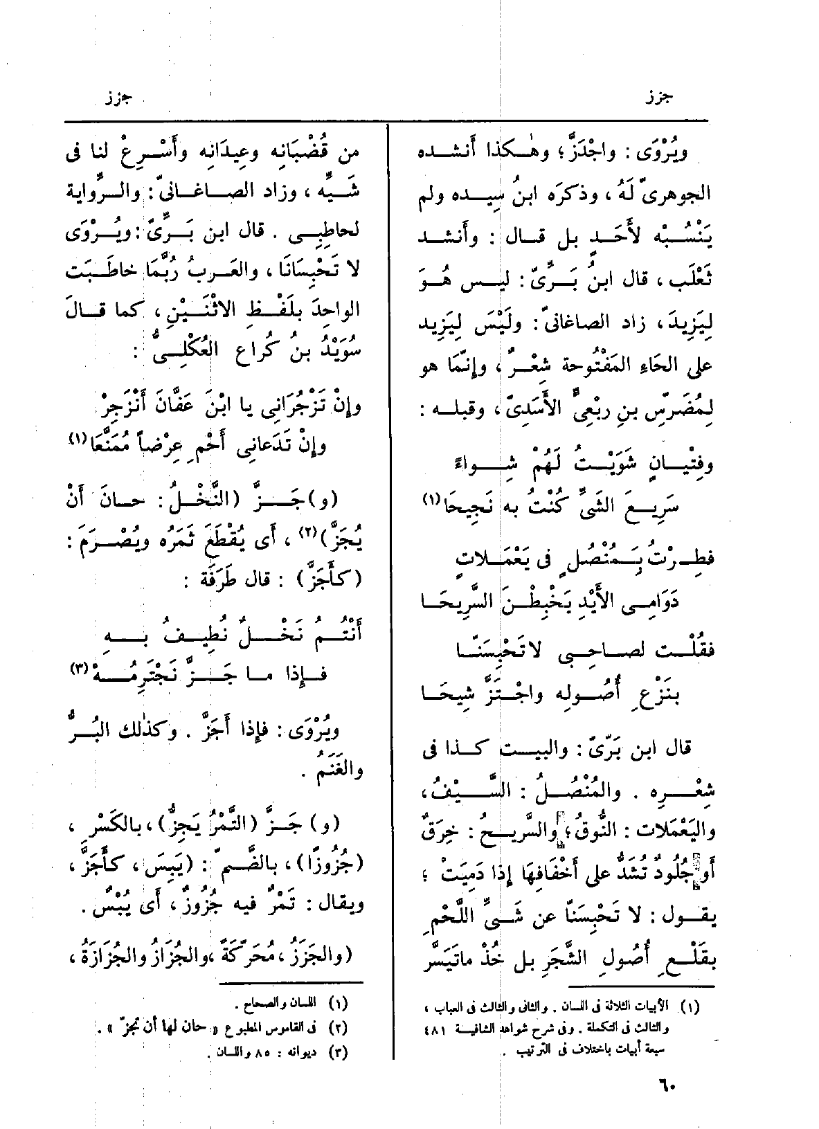 ويُروى: فَإِذا} أَجَزَّ. وَكَذَلِكَ البُرُّ والغنَم. {جَزَّ التَّمْرُ} يَجِزُّ، بِالْكَسْرِ، {جُزوزاً، بالضمّ: يَبِسَ، كَأَجَزَّ، وَيُقَال: تَمْرٌ فِيهِ} جُزوزٌ، أَي يُبْسٌ. {والجَزَز، مُحرّكةً،} والجُزاز! والجُزازة