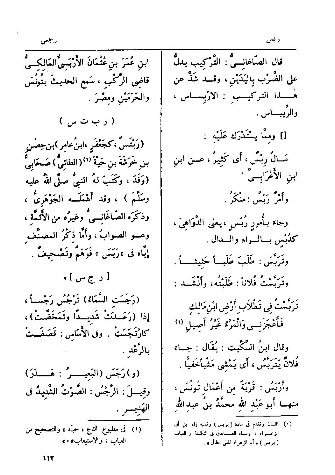 قَالَ الصّاغَانِيُّ: التَّرْكِيبُ يدلُّ على الضَّرْب باليَدَيْنِ، وَقد شَذَّ عَن هَذَا التركيبِ: الارْبِساس، والرِّيباس.