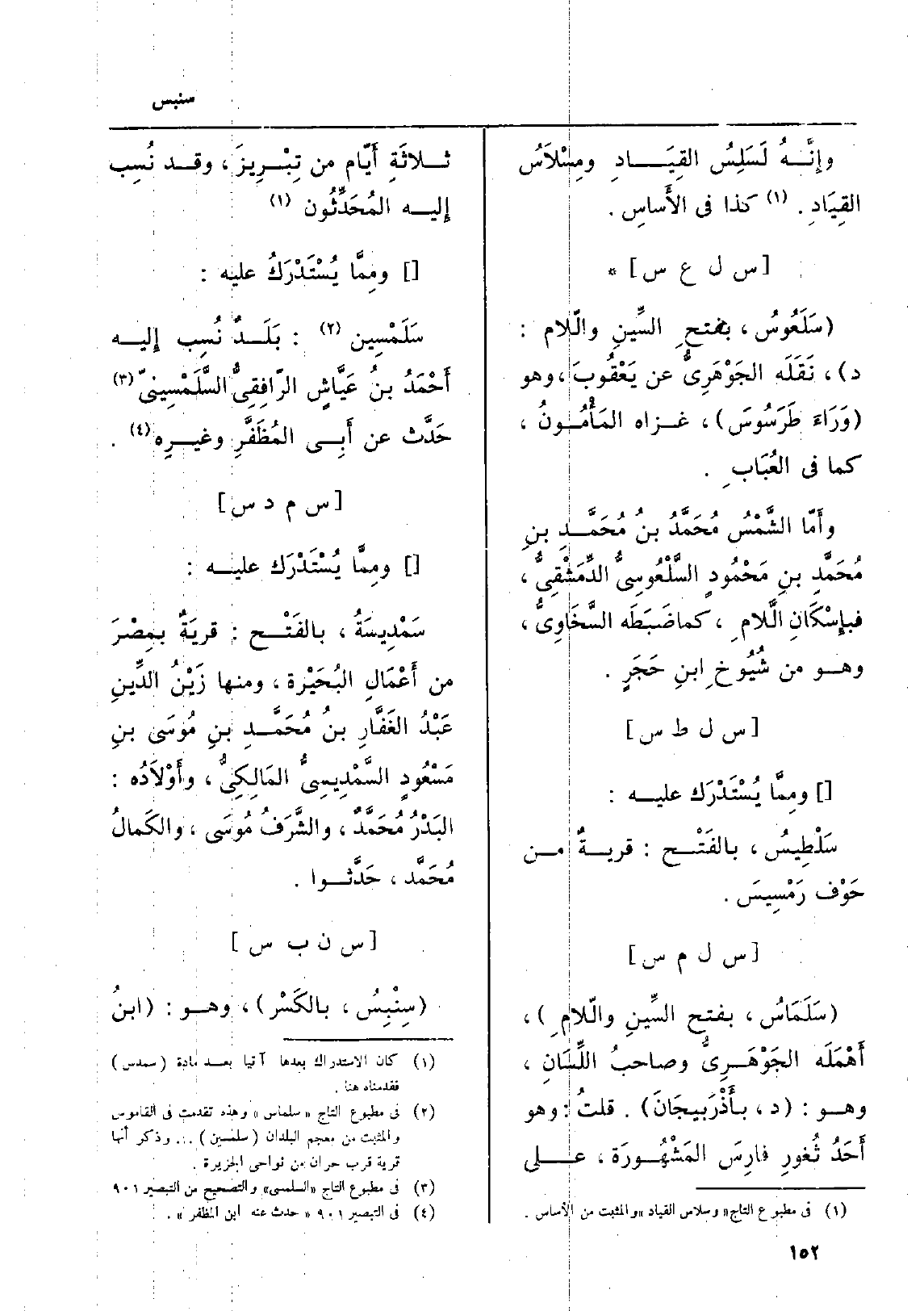 ومِمَّا يُسْتَدْرَكُ عَلَيْهِ: سَلَمْسِين: بَلَدٌ نُسِب إِليه أَحْمَدُ بنُ عَيَّاشٍ الرّافِقِيُّ السَّلَمْسِينيّ حَدَّث عَن أَبِي المُظَفَّرِ وغيرِه.
