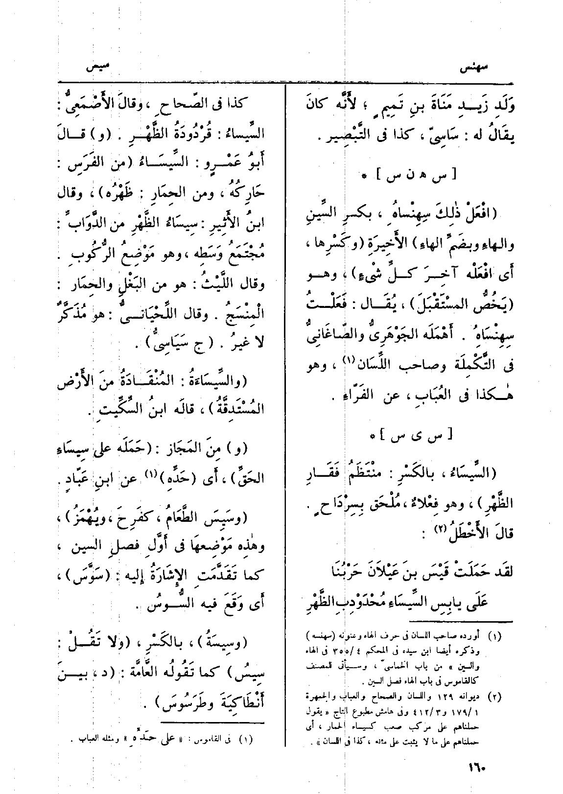 افْعَلْ ذلِكَ سِهِنْساهُ، بكسرِ السِّينِ والهاءِ وبضَمِّ الهاءِ الأَخِيرَةِ وكَسْرِها، أَي افْعَلْه آخِرَ كلِّ شْيءٍ، وَهُوَ يَخُصُّ المسْتَقْبَلَ، يُقَال: فَعَلْتُ سِهْنْسَاهُ. أَهْمَلَه الجُوْهَرِيُّ والصّاغَانِيُّ فِي التَّكْمِلَة وَصَاحب اللِّسَان، وَهُوَ هَكَذَا فِي العُبَاب، عَن الفَرّاءِ.