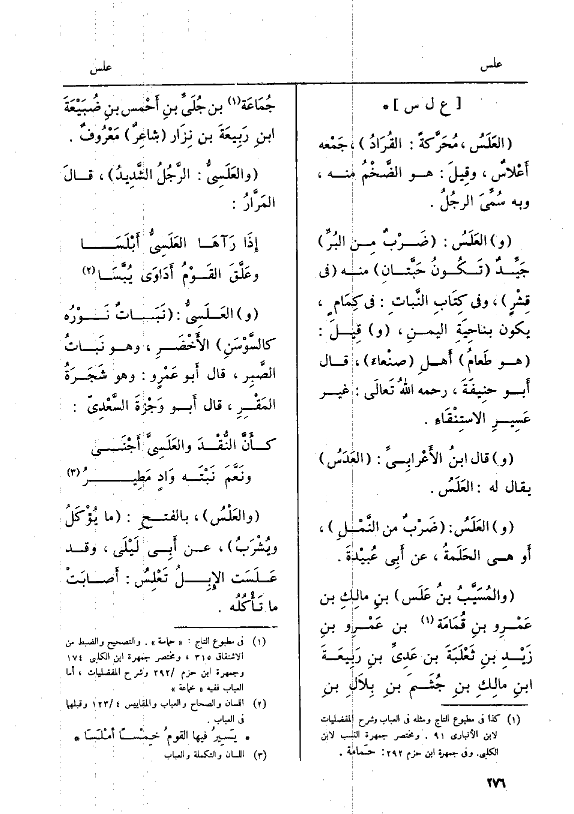 وَقَالَ ابنُ الأَعْرابِيِّ: العَدَسُ يُقَال لَهُ: العَلَسُ. والعَلَسُ: ضَرْبٌ من النَّمْلِ، أَو هِيَ الحَلَمةُ، عَن أَبِي عُبَيْدةَ. والمُسَيَّبُ بنُ عَلَس بنِ مالِكِ بن عَمْرِو بنِ قُمَامَة بن عَمْرِو بن زَيْدِ بنِ ثَعْلَبَةَ بن عَدِيِّ بنِ رَبِيعَةَ ابنِ مالِكِ بنِ جُشَمَ بنِ بِلاَلِ بنِ جُمَاعَة بن جُلَيِّ بنِ أَحْمس بنِ ضُبَيْعَةَ ابنِ رَبِيعَةَ بن نِزَار شاعِرٌ مَعْروفٌ. والعَلَسِيُّ: الرَّجُلُ الشَّدِيدُ، قالَ المَرَّارُ: