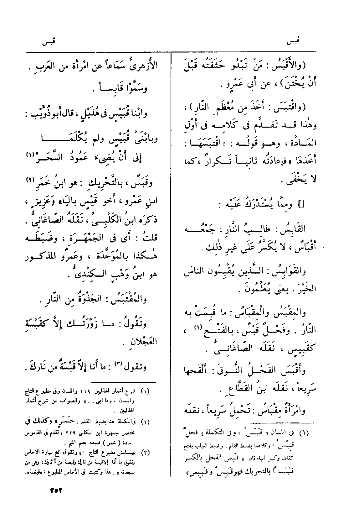 والأَقْبَسُ: مَنْ تَبْدُو حَشَفَتُه قَبْلَ أَنْ يُخْتَنَ، عَن أَبي عَمْرٍ و. واقْتَبَسَ: أَخَذَ مِن مُعْظَمِ النّارِ، وَهَذَا قد تَقدَّم فِي كَلامِه فِي أَوّلِ المَادَّة، هُوَ قَوْلُه: اقْتَبَسَهَا: أَخَذَهَا، فإعادَتُه ثانِياً تَكْرارٌ، كَمَا لَا يَخْفَى. ومِمَّا يُسْتَدْرَكُ عَلَيْه: القَابِسُ: طالِبُ النَّارِ، جَمْعُه أَقْبَاسٌ، لَا يُكَسَّرُ عَلَى غيرِ ذلِك.
