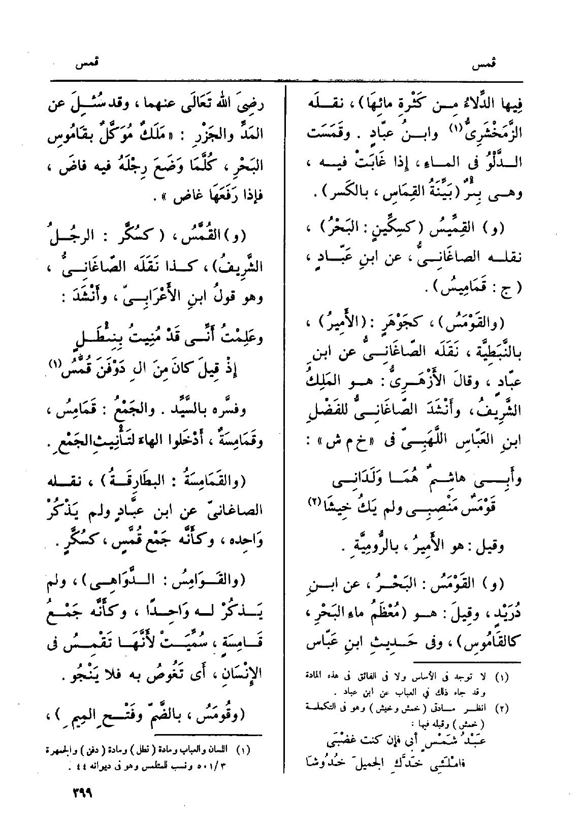 والقِمِّيسُ كسِكِّينٍ: البَحْرُ، نَقله الصاغَانِيُّ، عَن ابنِ عَبّادٍ، ج: قَمَامِيسُ.