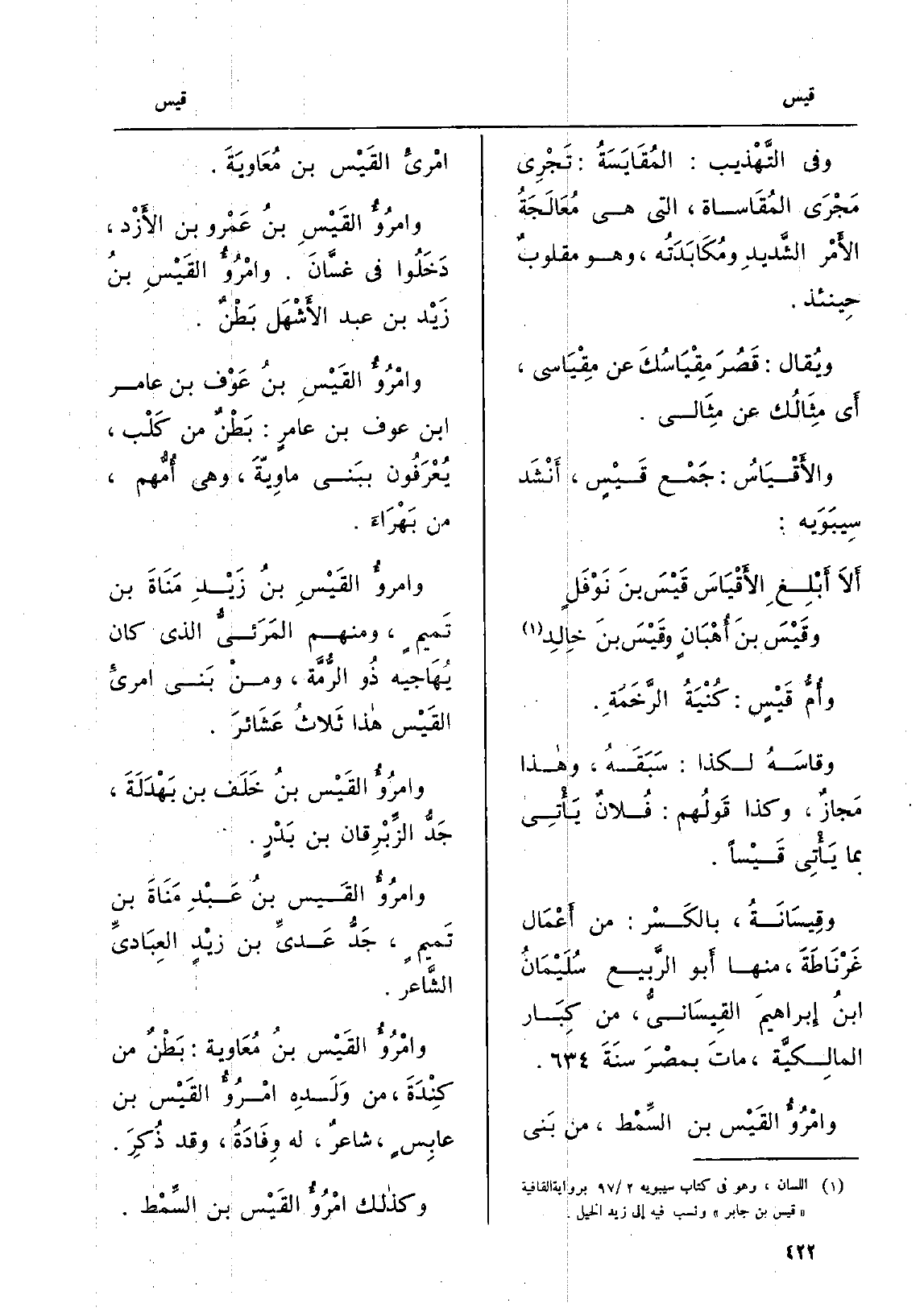 (أَلاَ أَبْلِغِ} الأَقْيَاسَ {قَيْسَ بنَ نَوْفَلٍ ... } وقَيْسَ بنَ أُهْبَانٍ وقَيْسَ بنَ خالِدِ)